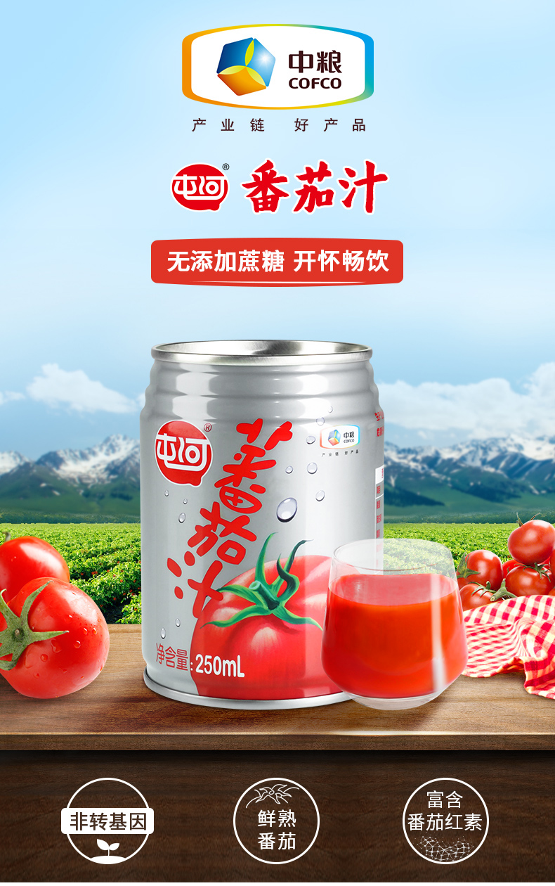 【秒杀25.10.29到期介意慎拍】中粮屯河无糖番茄汁250ml