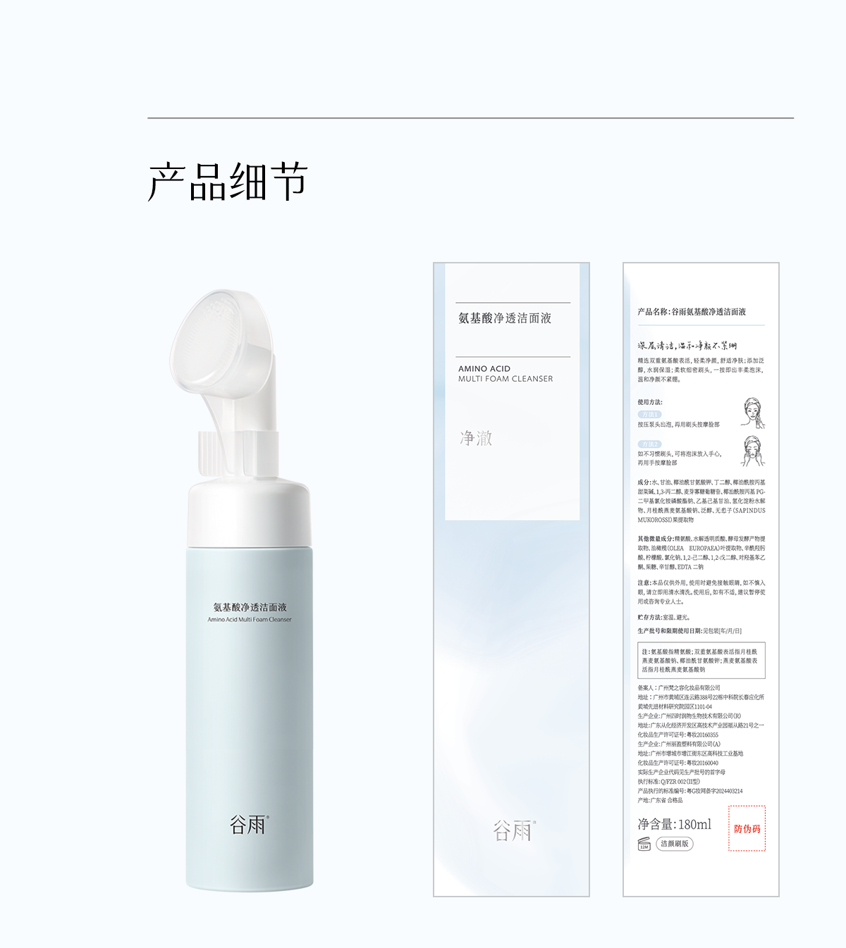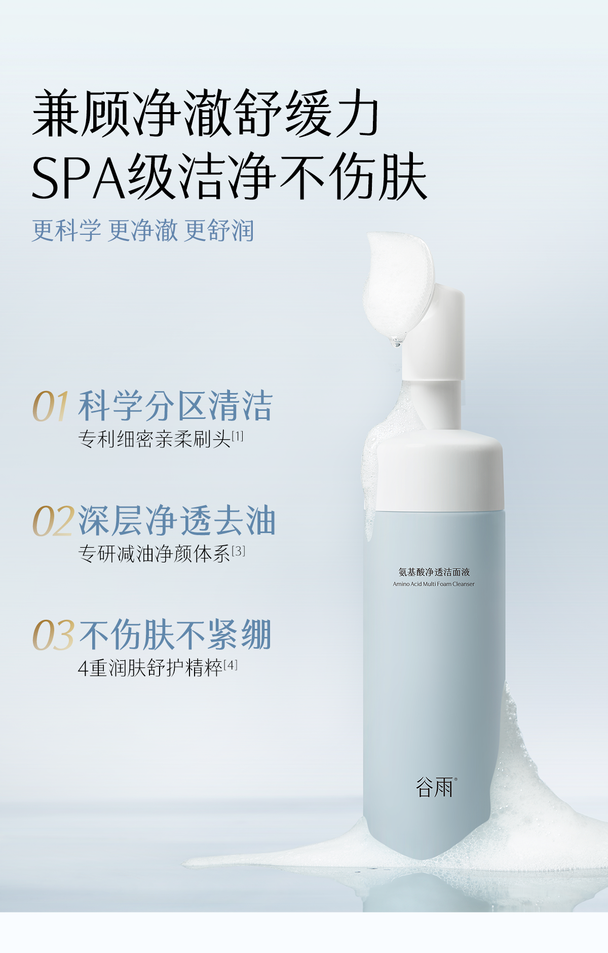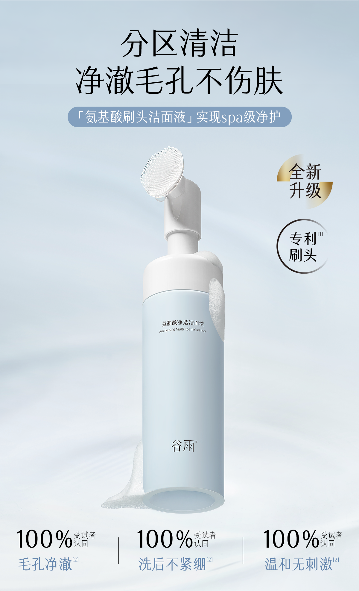 【双十二狂欢节】谷雨氨基酸净透洁面液180ml 刷头洁面温和净肤 洗得净·不拔干