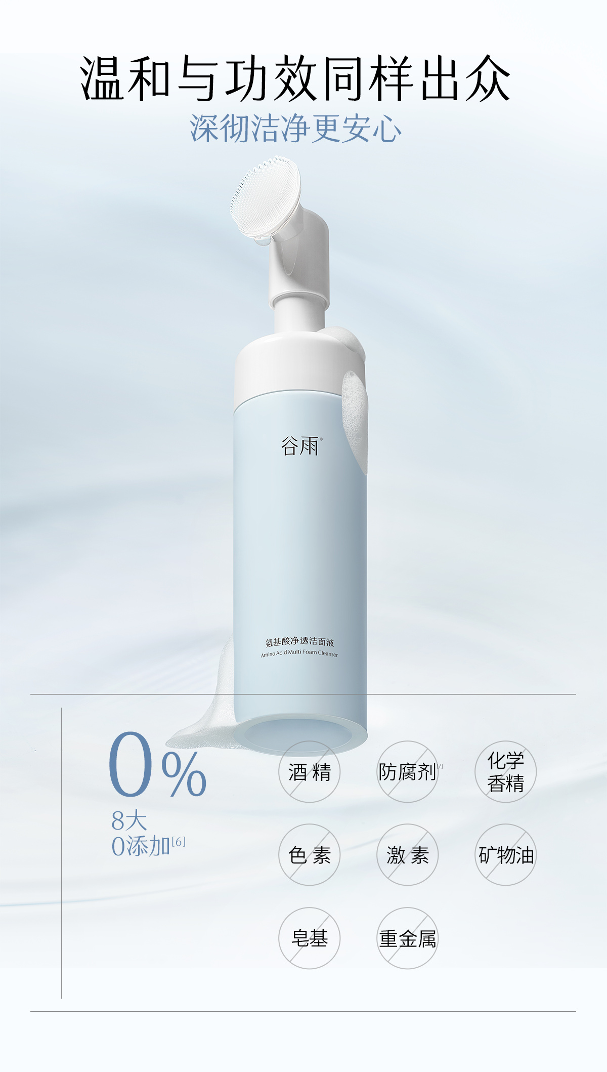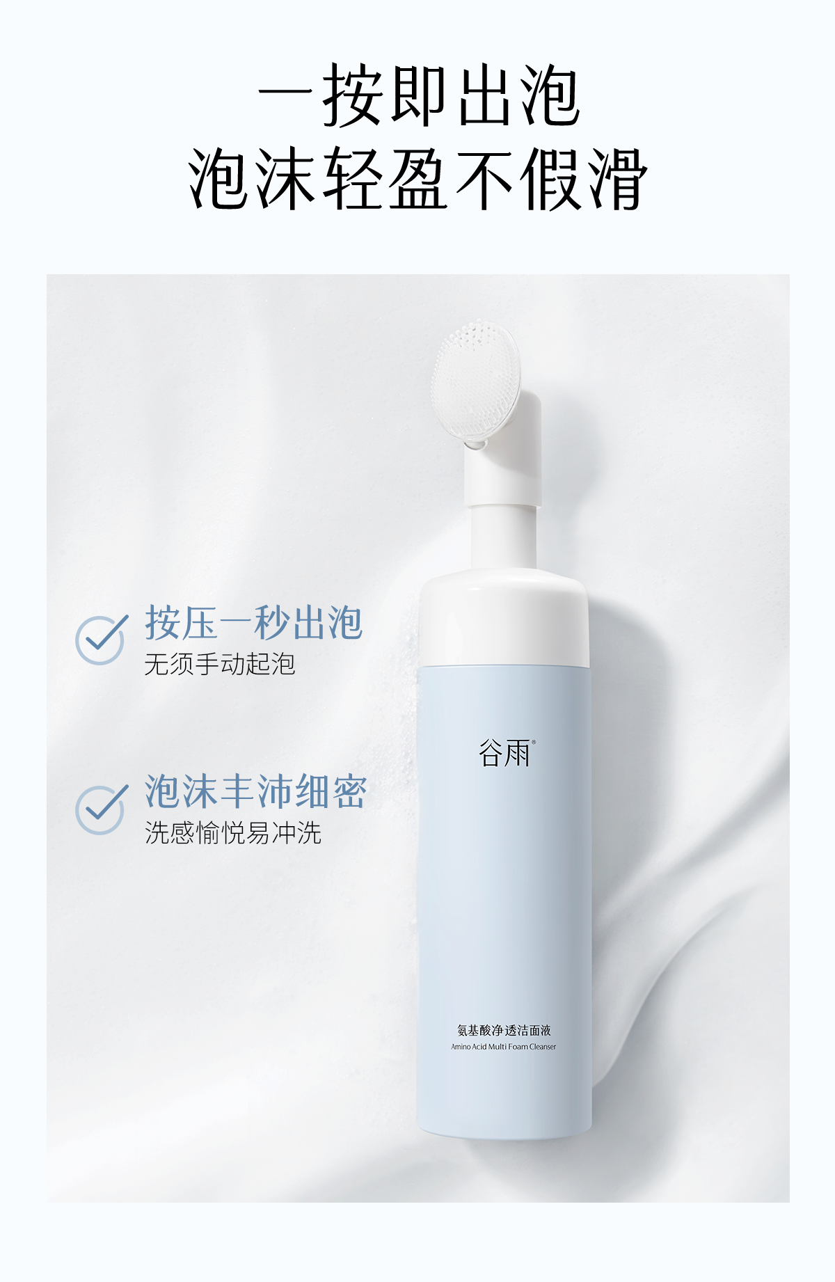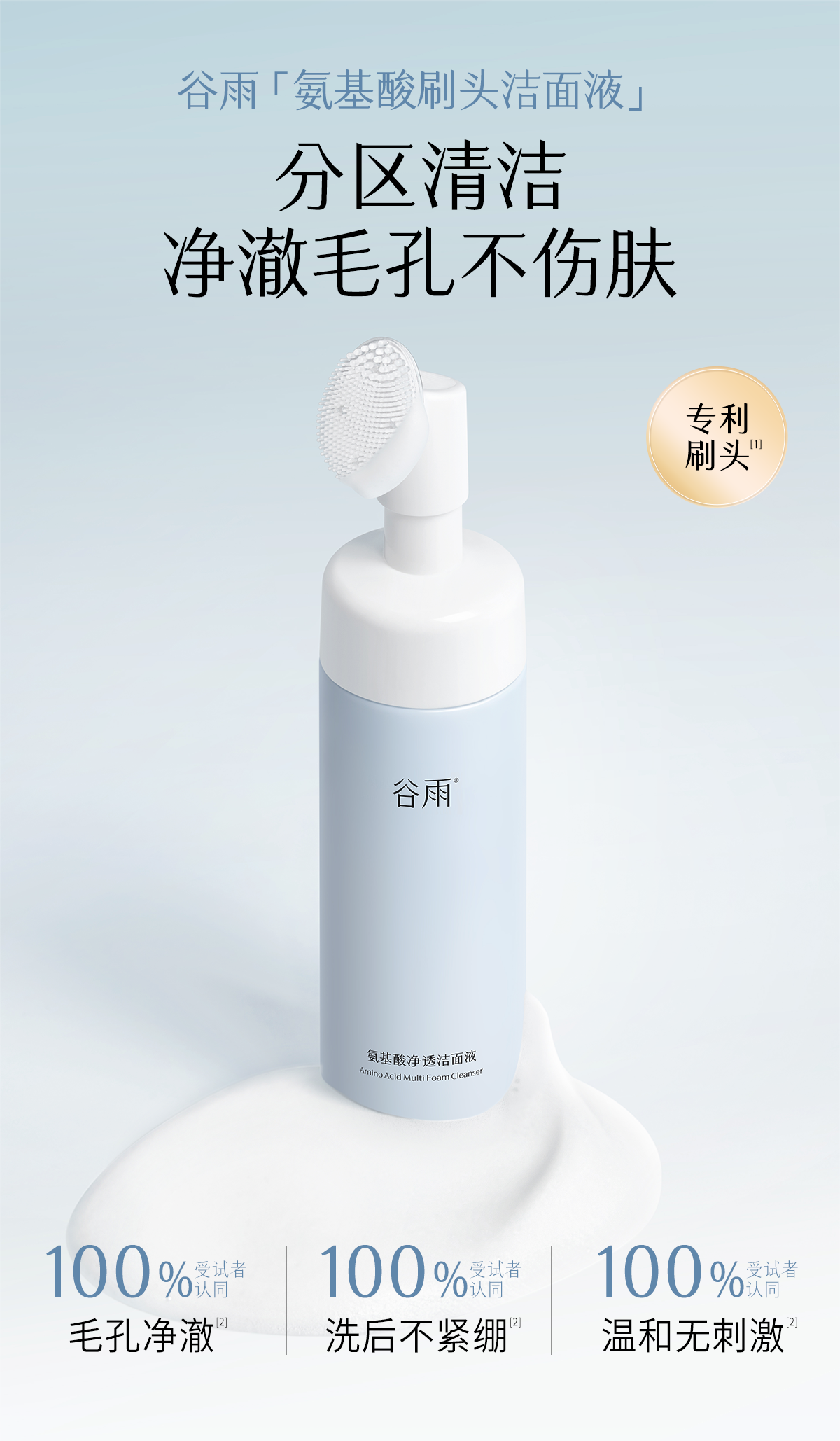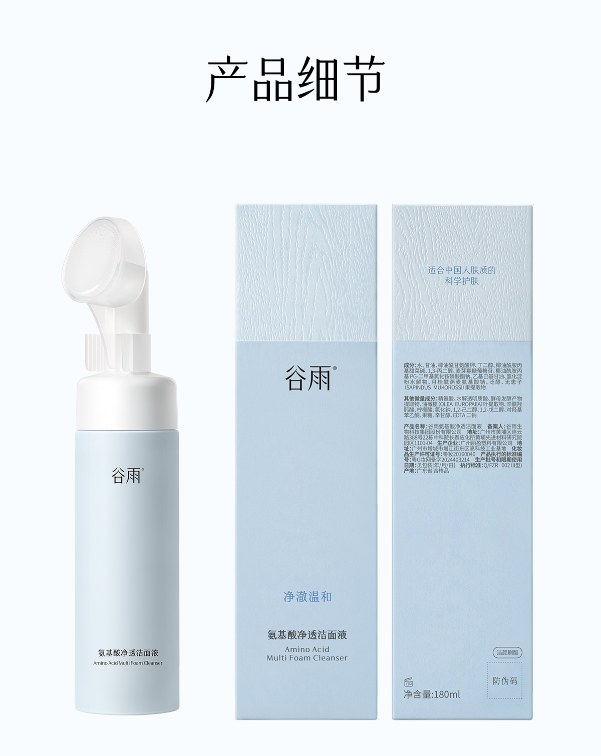 【三八焕新周】谷雨氨基酸净透洁面液180ml 刷头洁面温和净肤 洗得净·不拔干