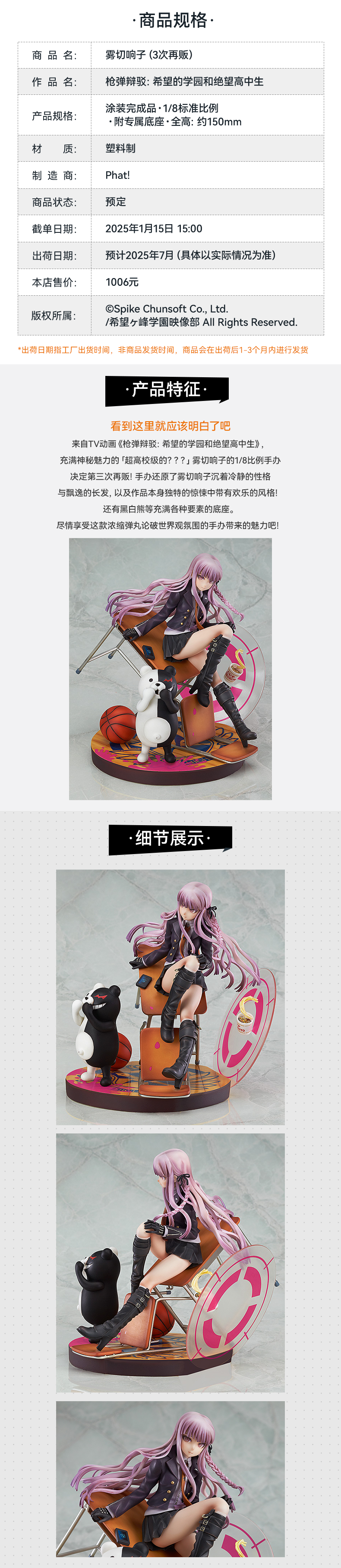 【GSC现货】1/8 雾切响子 枪弹辩驳:希望的学园和绝望高中生