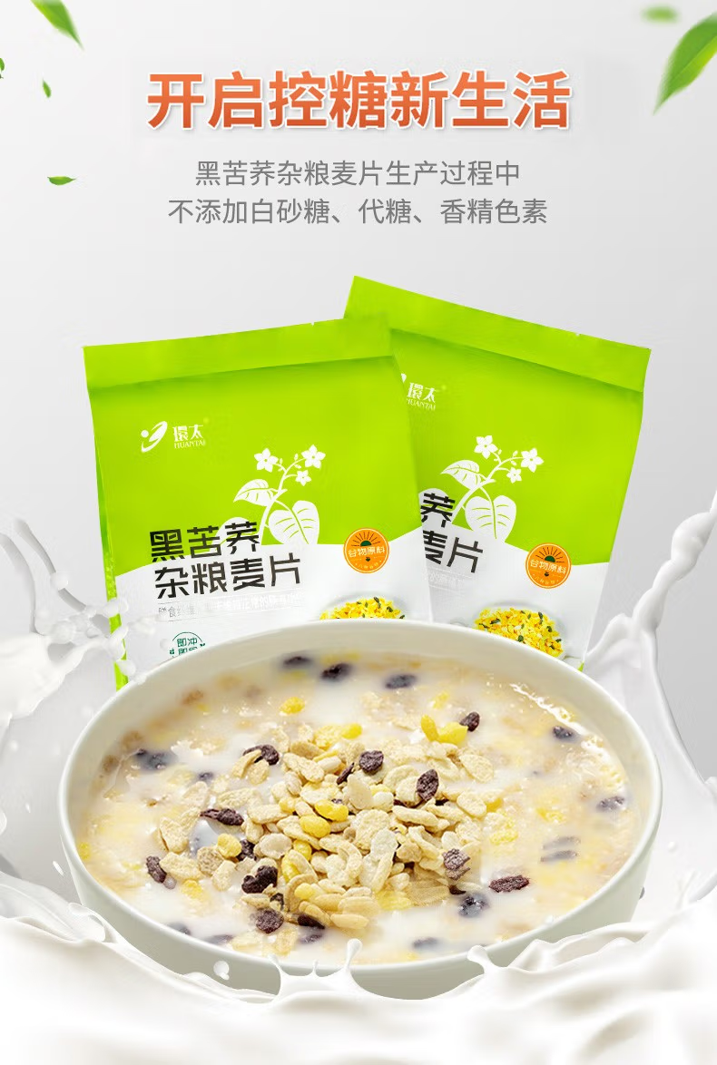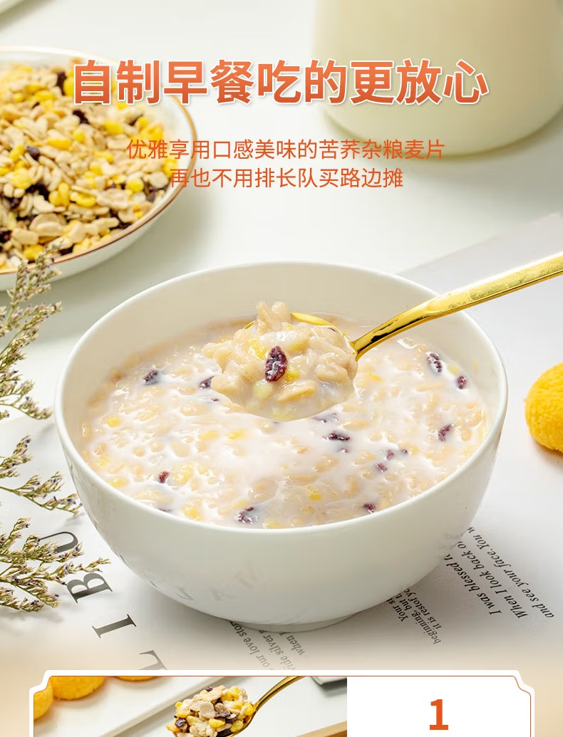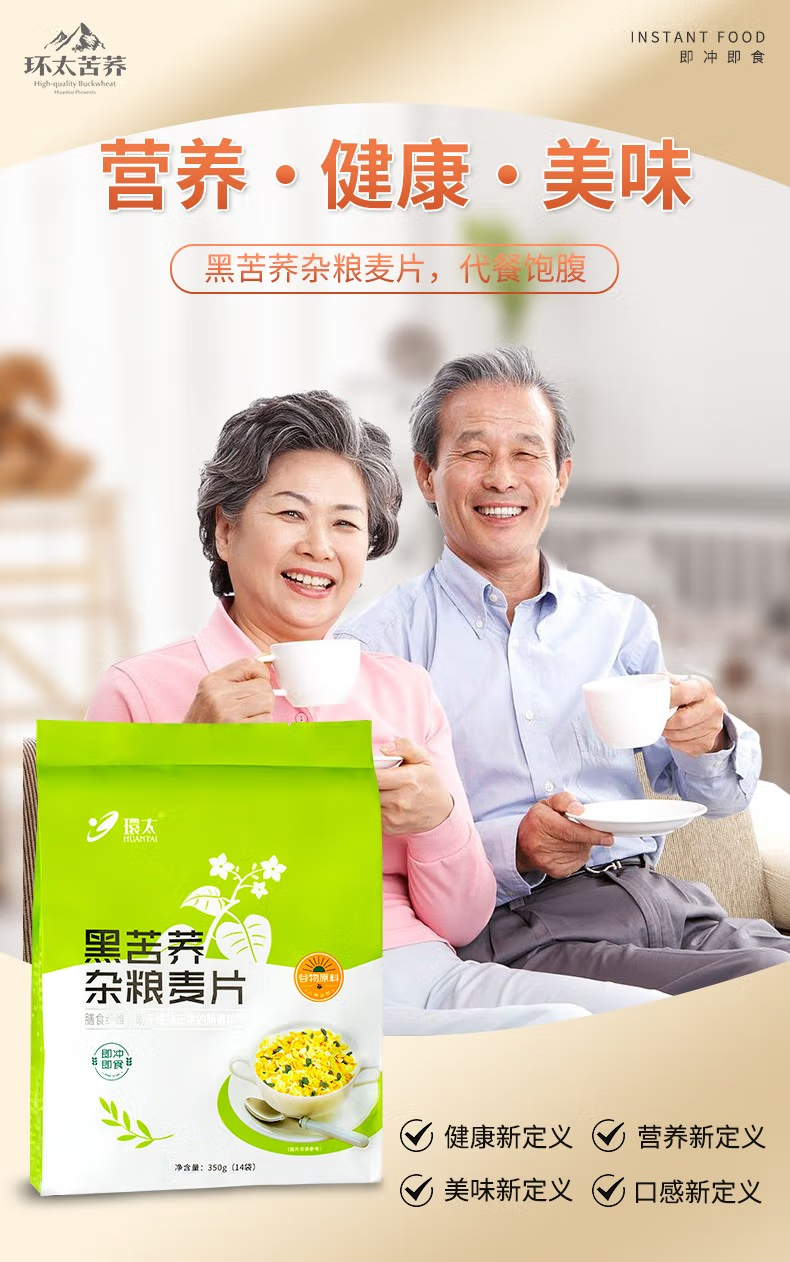 航.环太黑苦荞杂粮麦片 无添加蔗糖即食早餐 青中老年人代餐苦荞麦片 杂粮燕麦片350g独立包装
