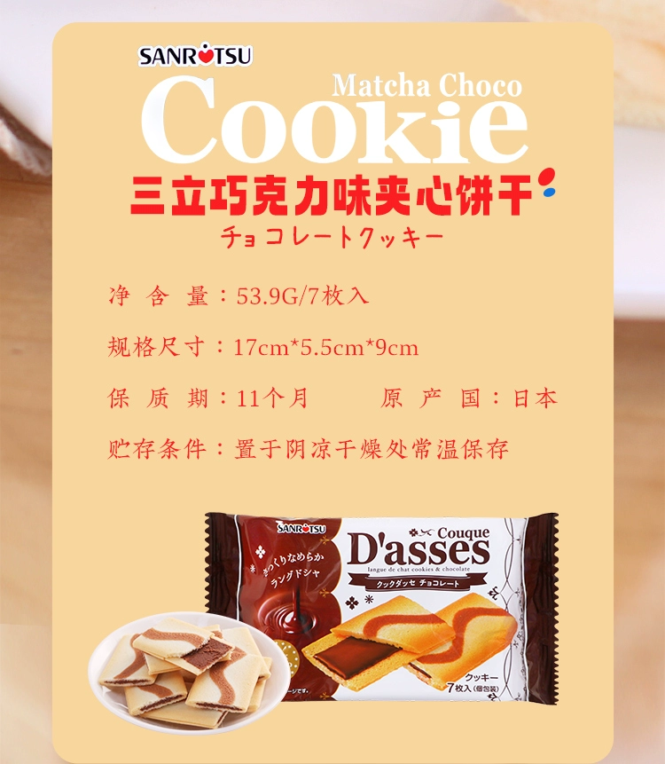 日本三立白巧克力味/巧克力味夹心饼干7枚装 香脆可口的薄酥饼干与巧克力的美妙结合 058759/058760