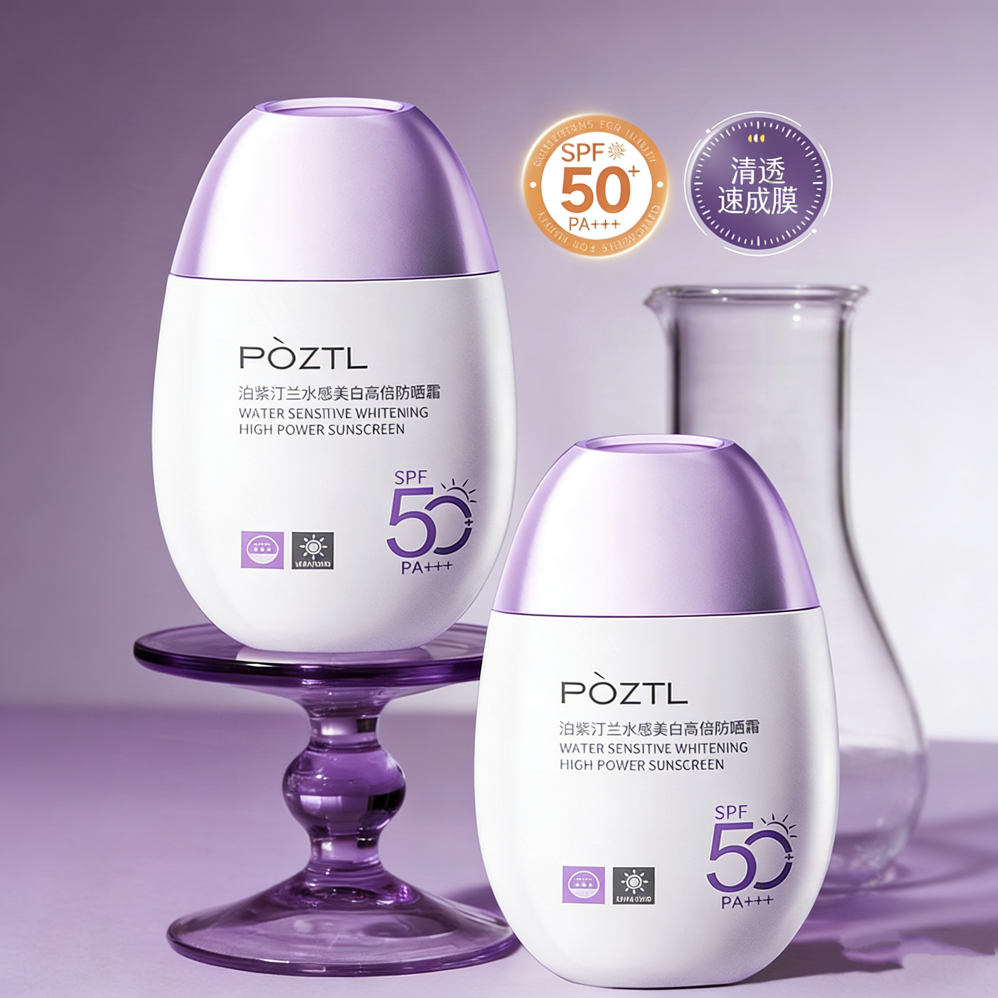 【POZTL泊紫汀兰 水感高倍防晒霜】50G一支,50+防晒值,光速成膜,冰感不油腻,防水防汗无刺激~
