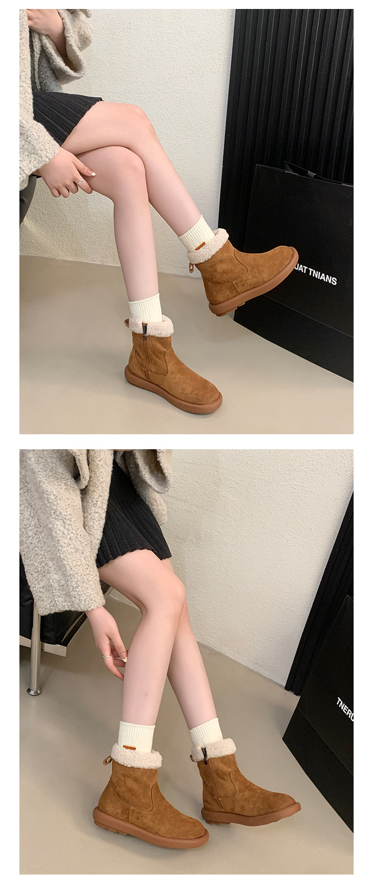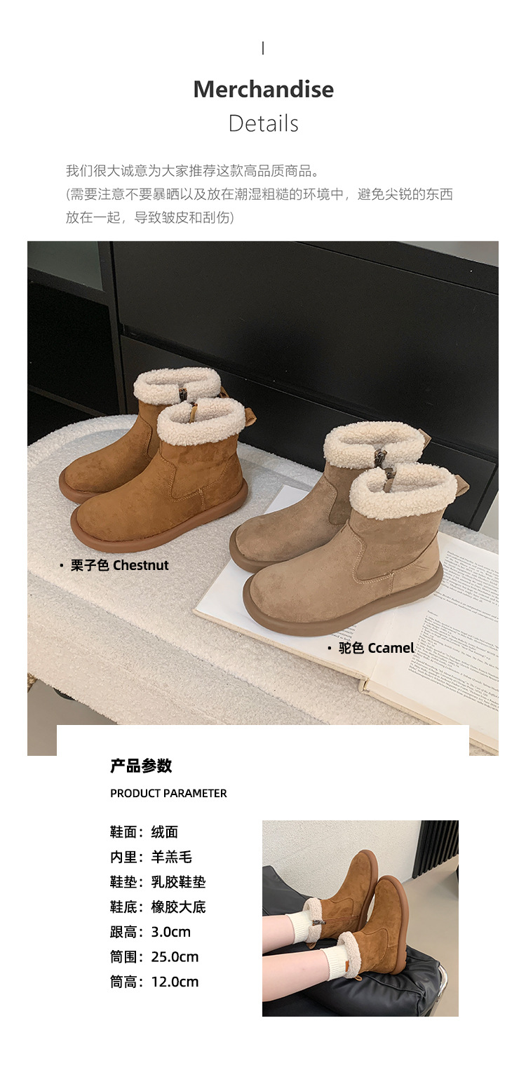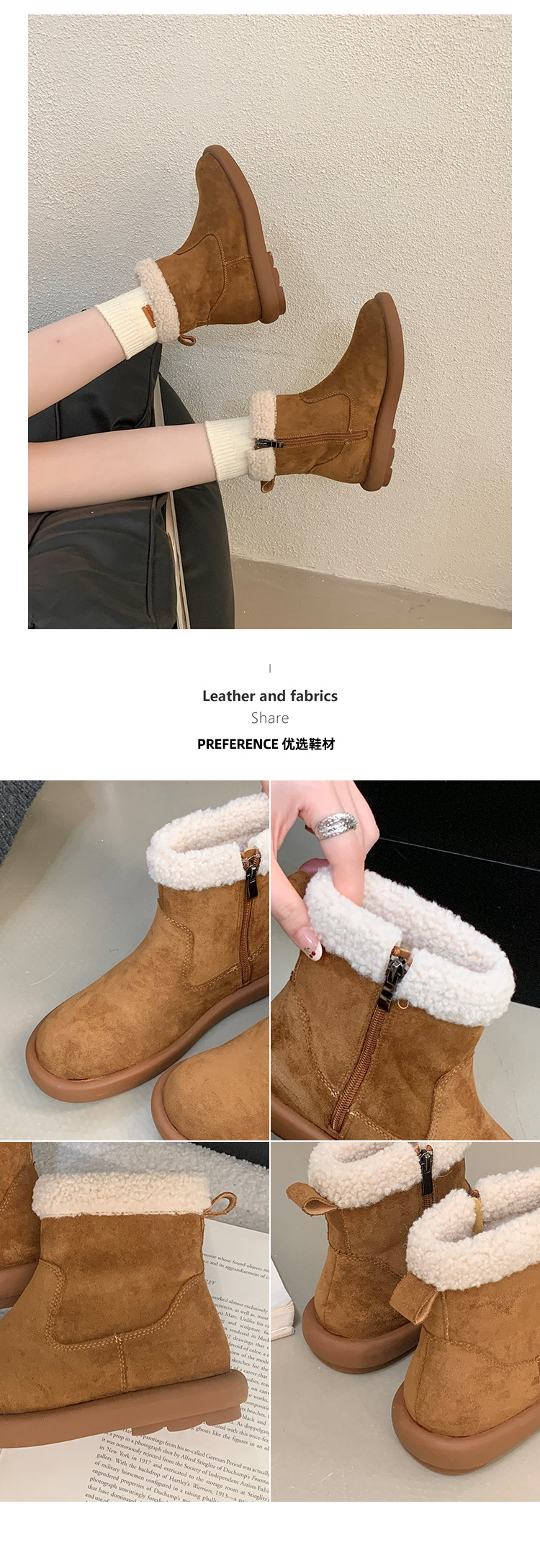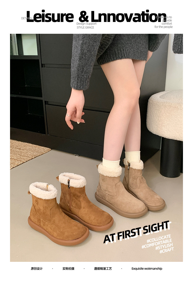 雪地靴皮毛一体2025新款冬季绒面短靴女加绒厚底马丁靴保暖棉鞋