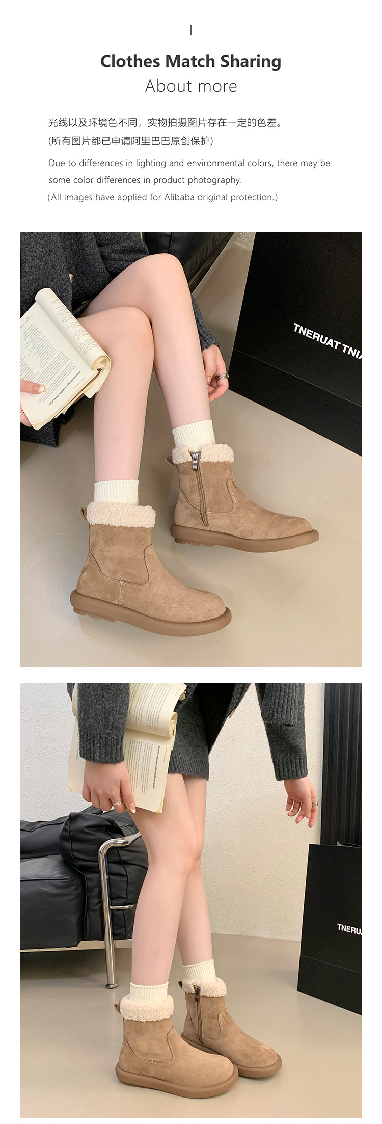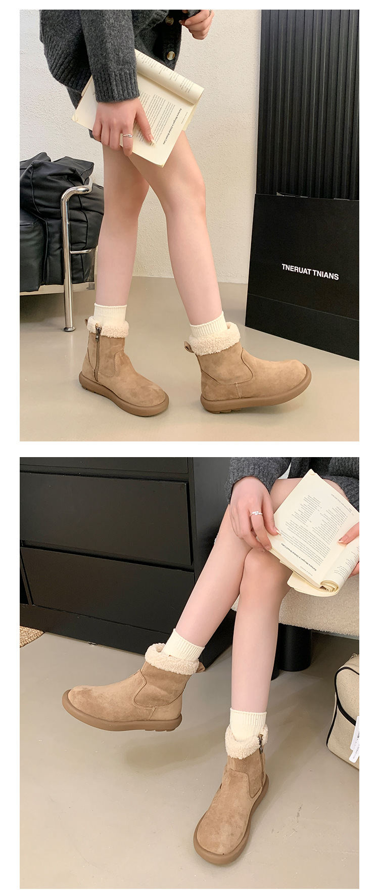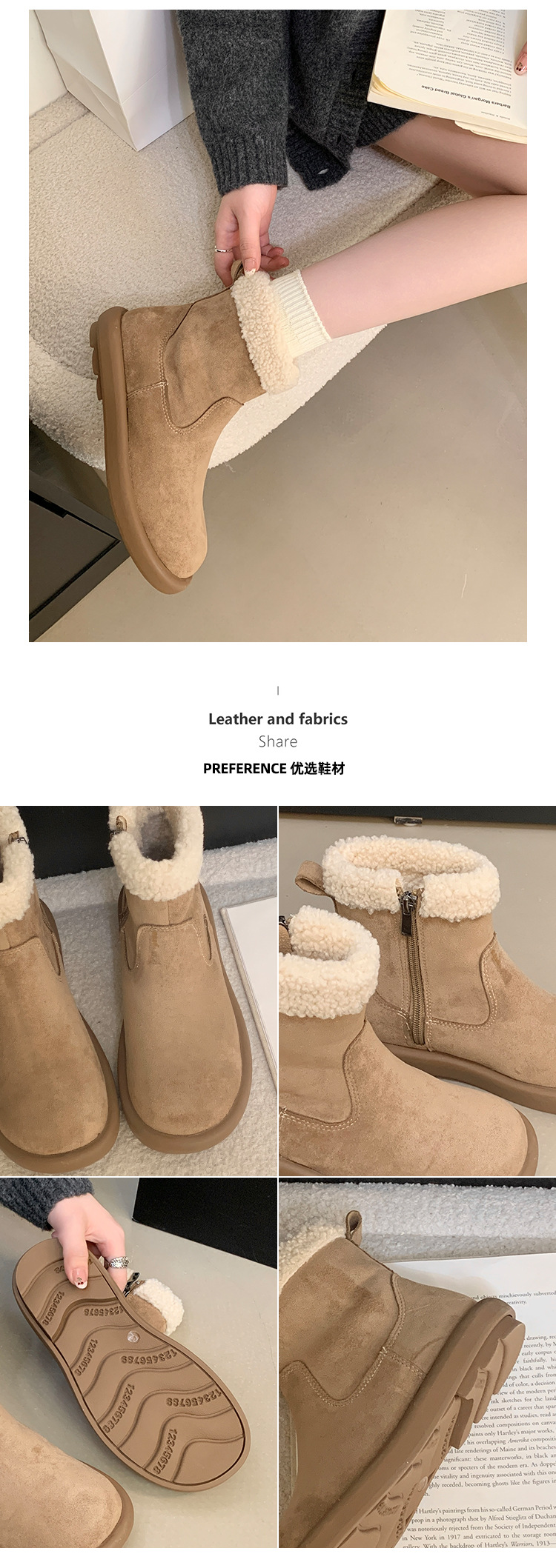 雪地靴皮毛一体2025新款冬季绒面短靴女加绒厚底马丁靴保暖棉鞋