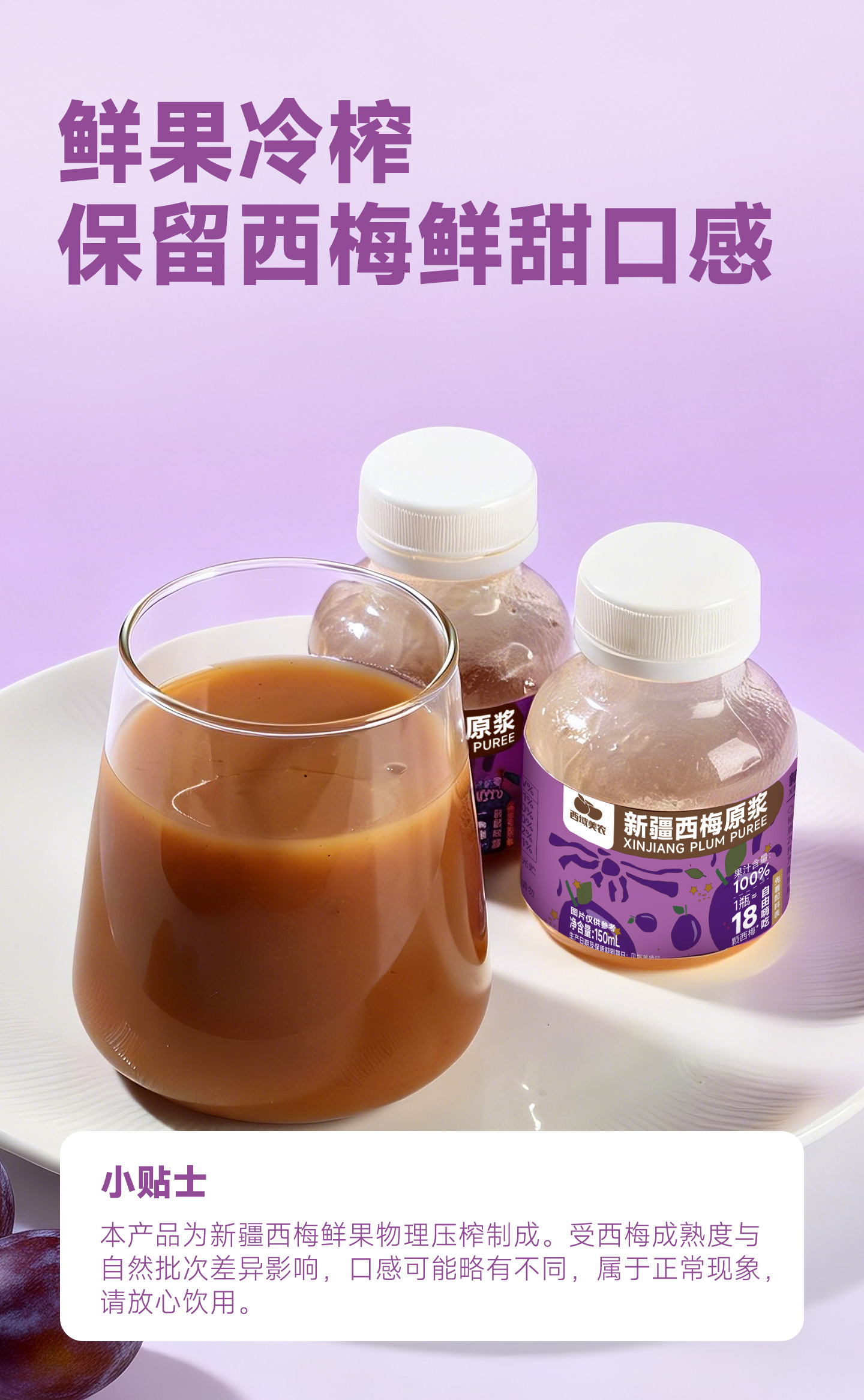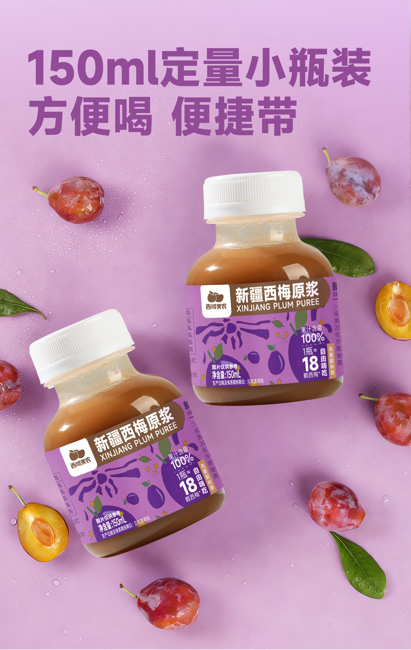 西域美农新疆西梅原浆150ml*10瓶 NFC鲜榨果汁 西梅汁 黑吉辽海南内蒙顺丰包邮,西藏中通运费8.5