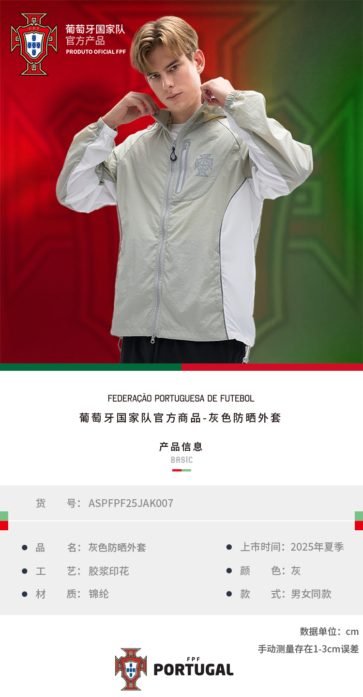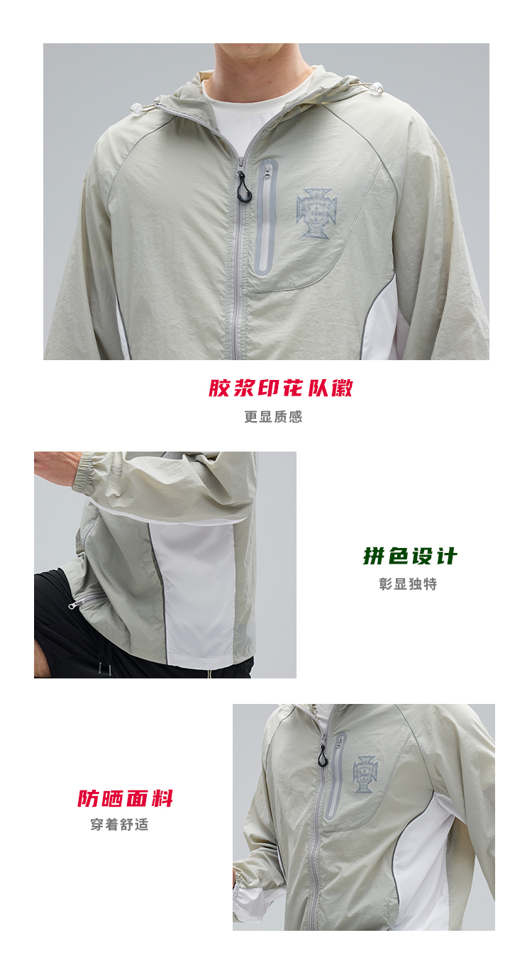 【官方正版】葡萄牙国家队 | 夏季灰色防晒服连帽款防晒外套