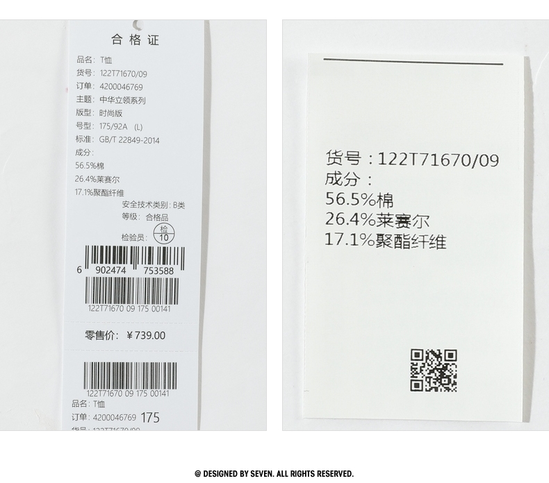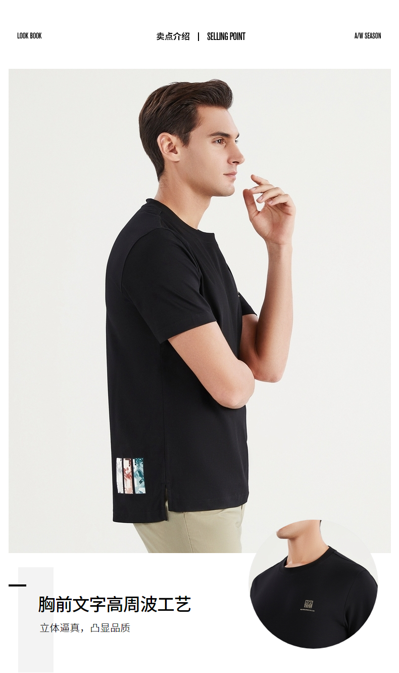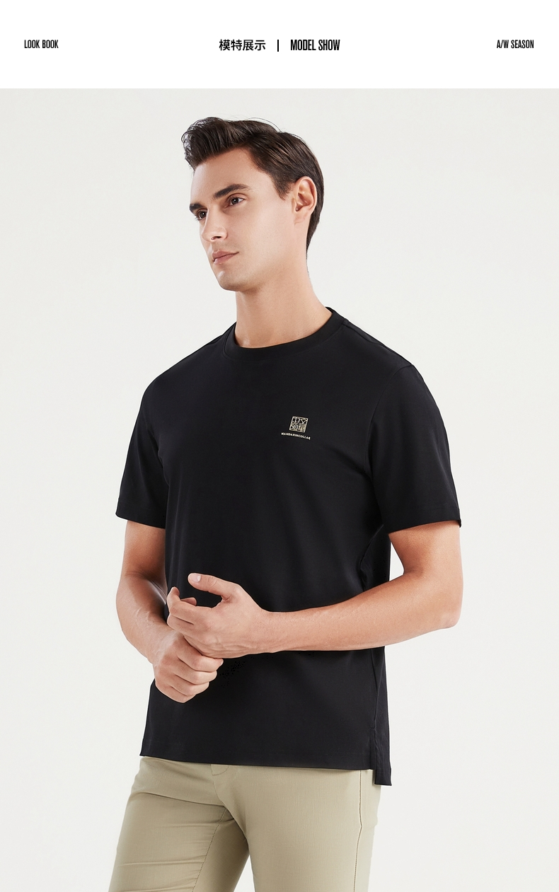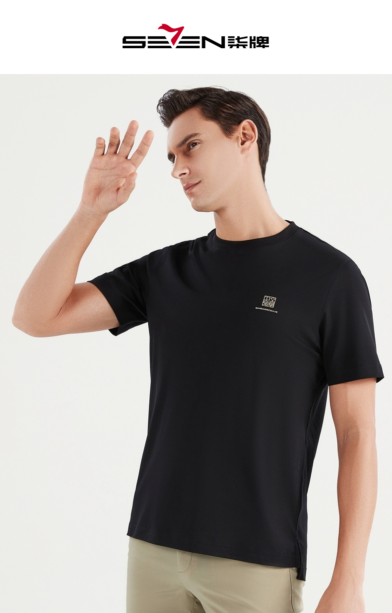 【中华立领】柒牌短袖t恤男国潮中国风休闲薄款夏季圆领体恤衫 122T71670