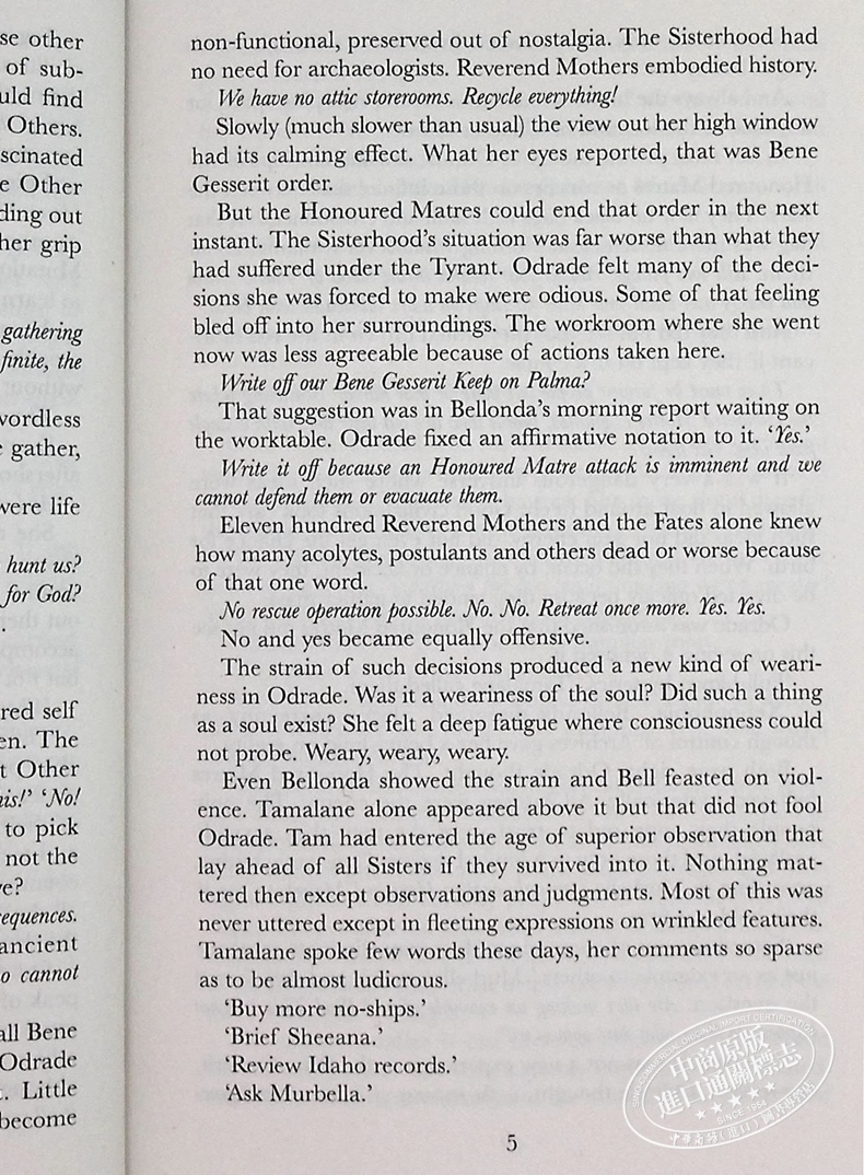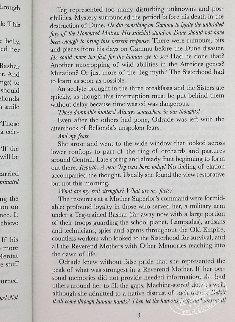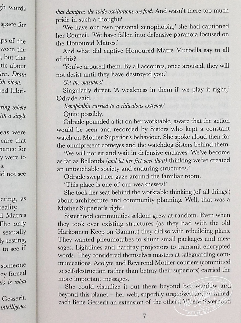 The long-established galactic order is passing. The Honoured Matres, ruthless and all-conquering, have destroyed the planet Dune. In opposition, hard-pressed but still fighting back, the Bene Gesserit sisterhood co-ordinate their resistance from their as-yet undiscovered home world, Chapter House.