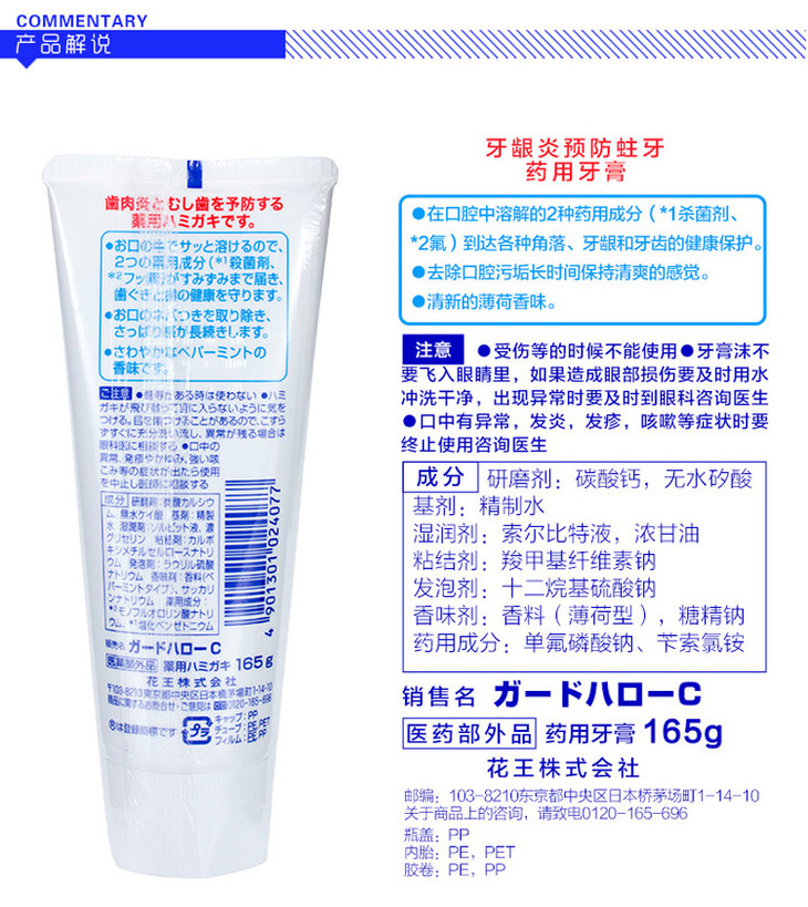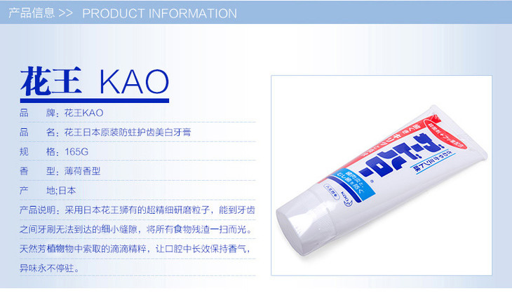 【保税仓】日本Kao花王防蛀护齿除牙垢透白牙膏165g/支防蛀小能手