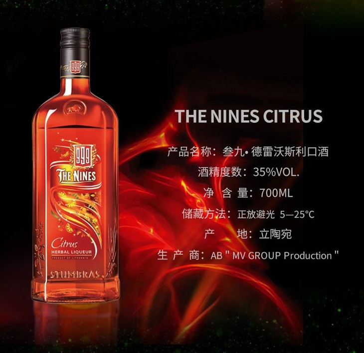 【单瓶】洋酒立陶宛进口999'The nines叁九德雷沃斯草本利口酒力娇酒 35%vol 700ml 柑橘味