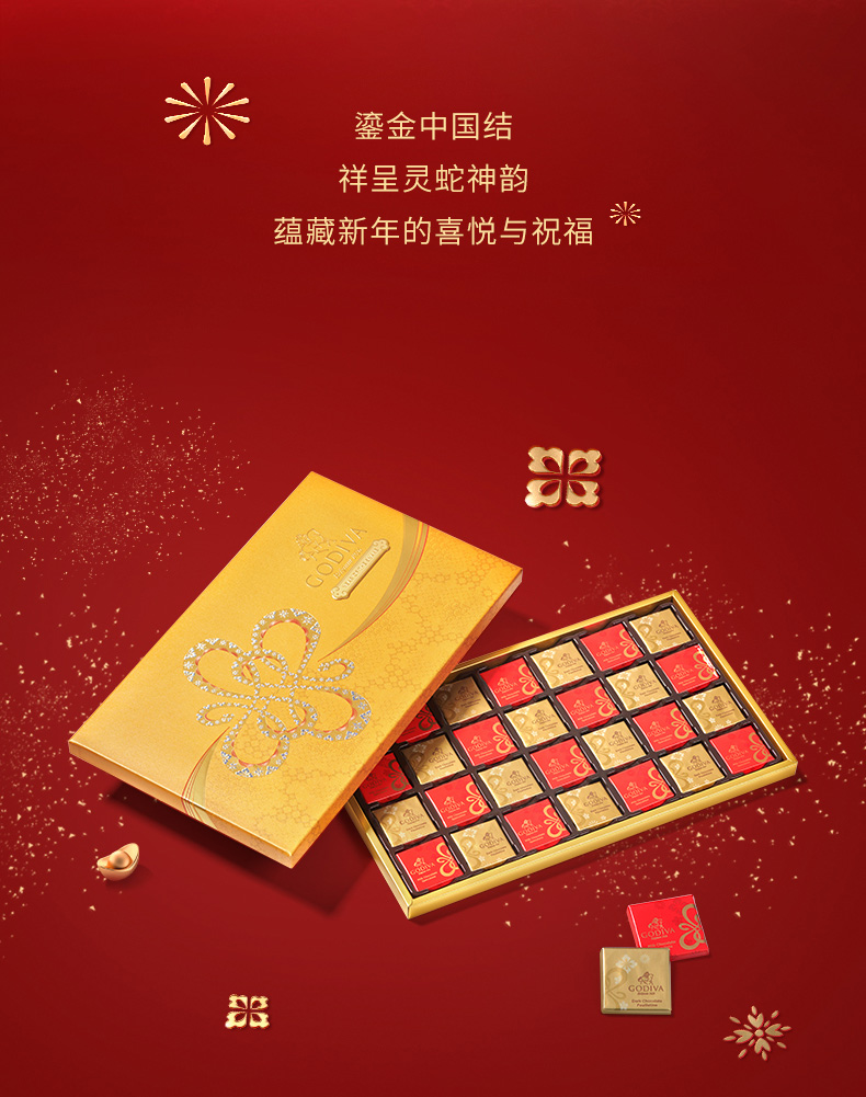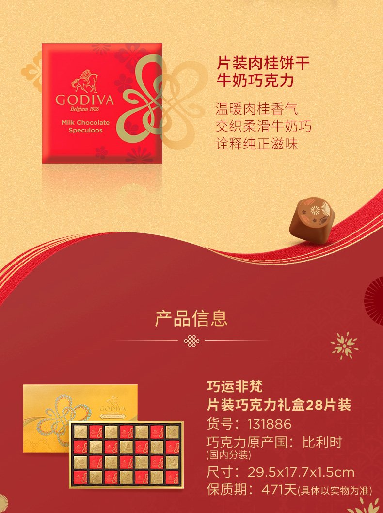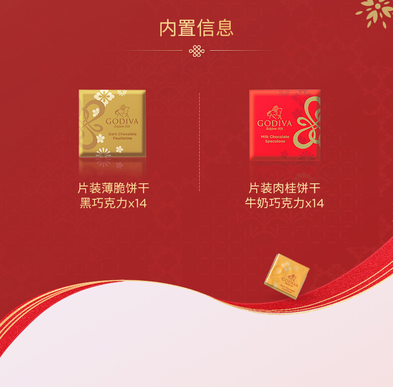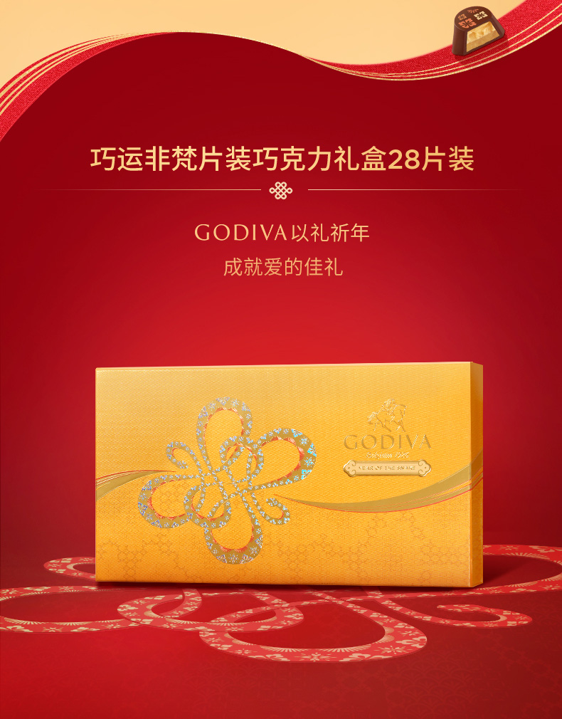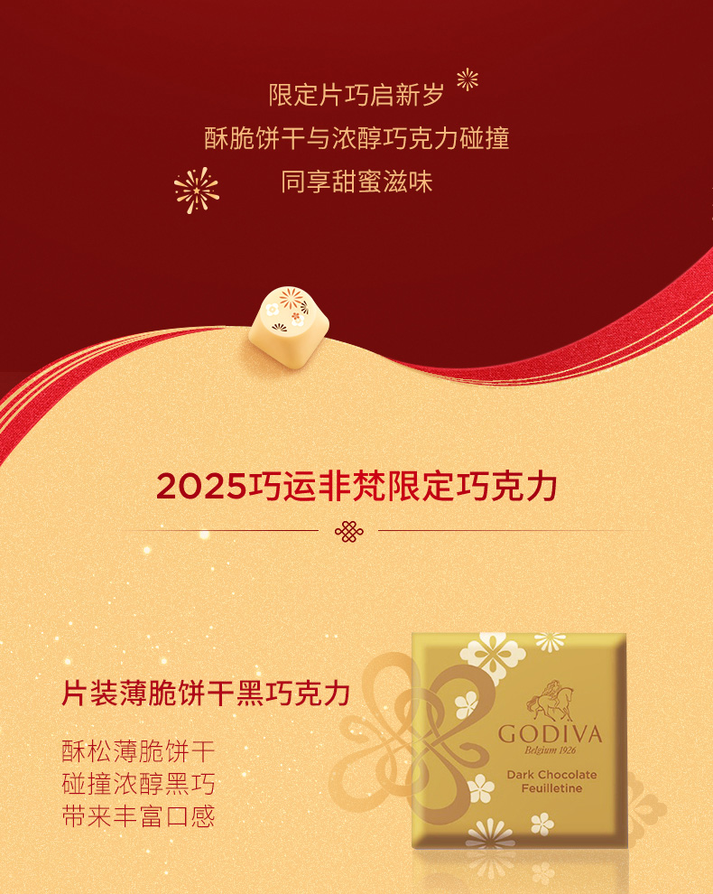 【蛇年春节限定】歌帝梵巧运非梵片装巧克力礼盒28片装145g/045144 片片限定薄脆饼干黑巧克力*肉桂饼干牛奶巧克力