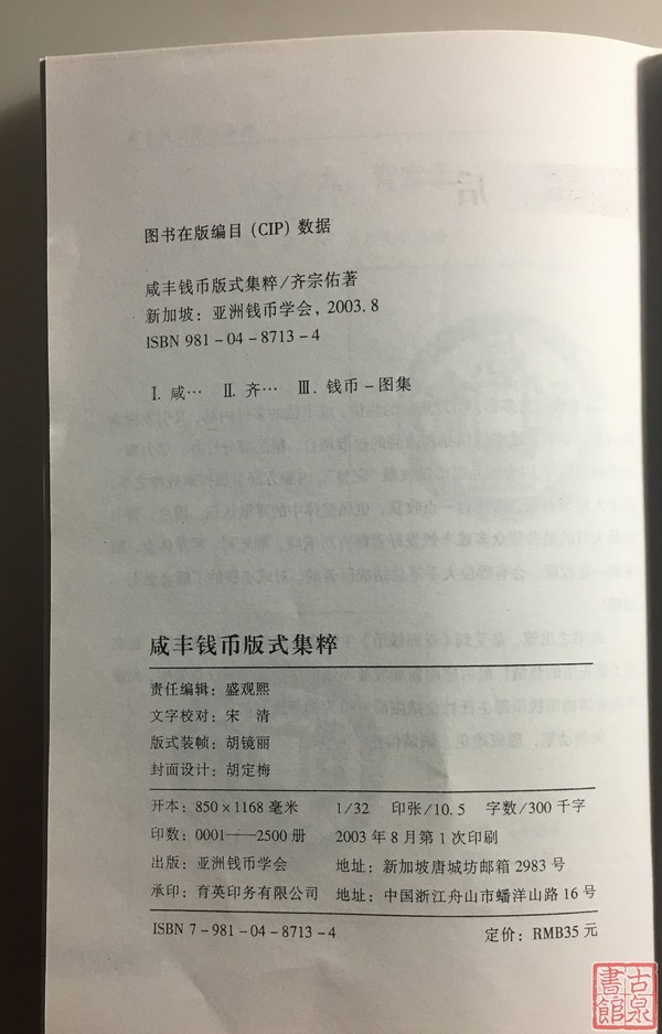 由咸丰钱收藏大家齐宗佑先生编撰,收录了以前钱谱未载的一些咸丰钱币,补充了咸丰钱的版式。