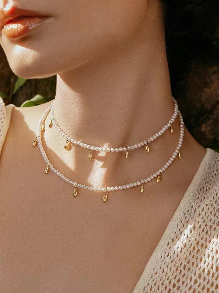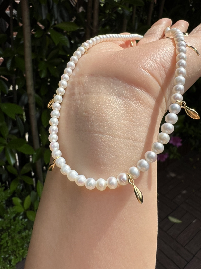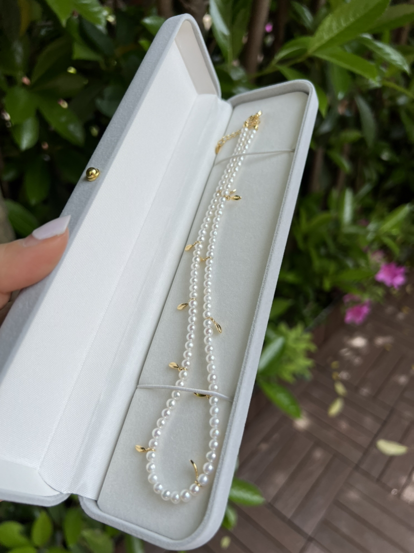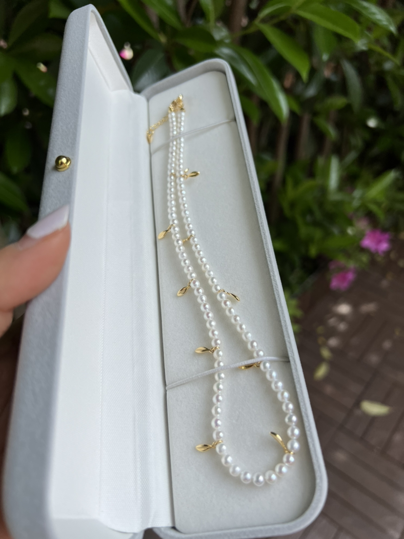 可以买两条叠带。HF事业有成金叶子珍珠项链,如果买我的呢,把人造贝珠换成4-4.5mm的淡水baby珠,近正圆强光微瑕。体感肯定更加温润亲肤。