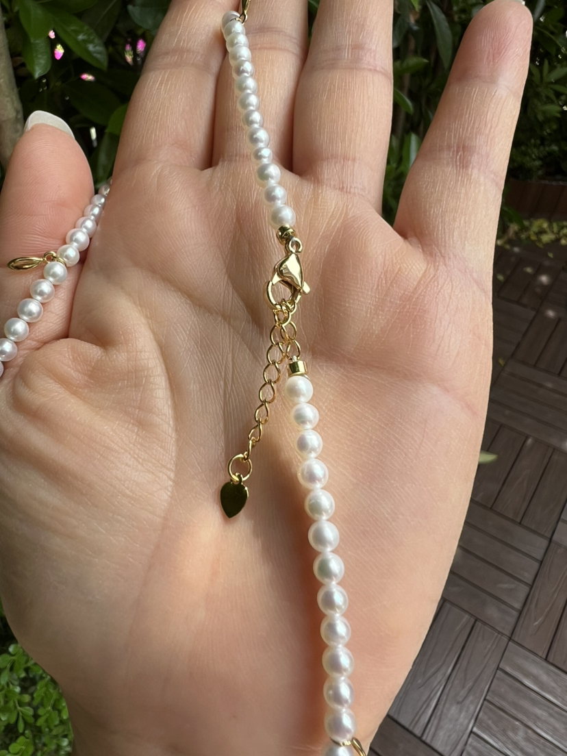 baby珍珠链太适合小仙女的春夏,单独带叠带都很好看,可以买两条叠带,因为长度可以调节,珍珠串珠长度40cm,延长链5cm,可以调整成不同长度叠带。