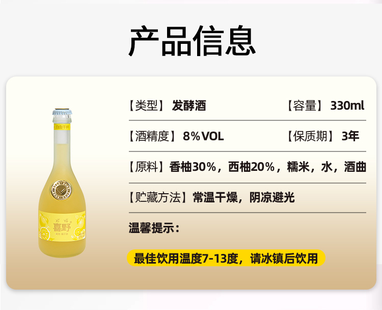 微醺局 【喜野起泡·柚子酒】 双柚混酿 柚香浓郁 气泡绵密