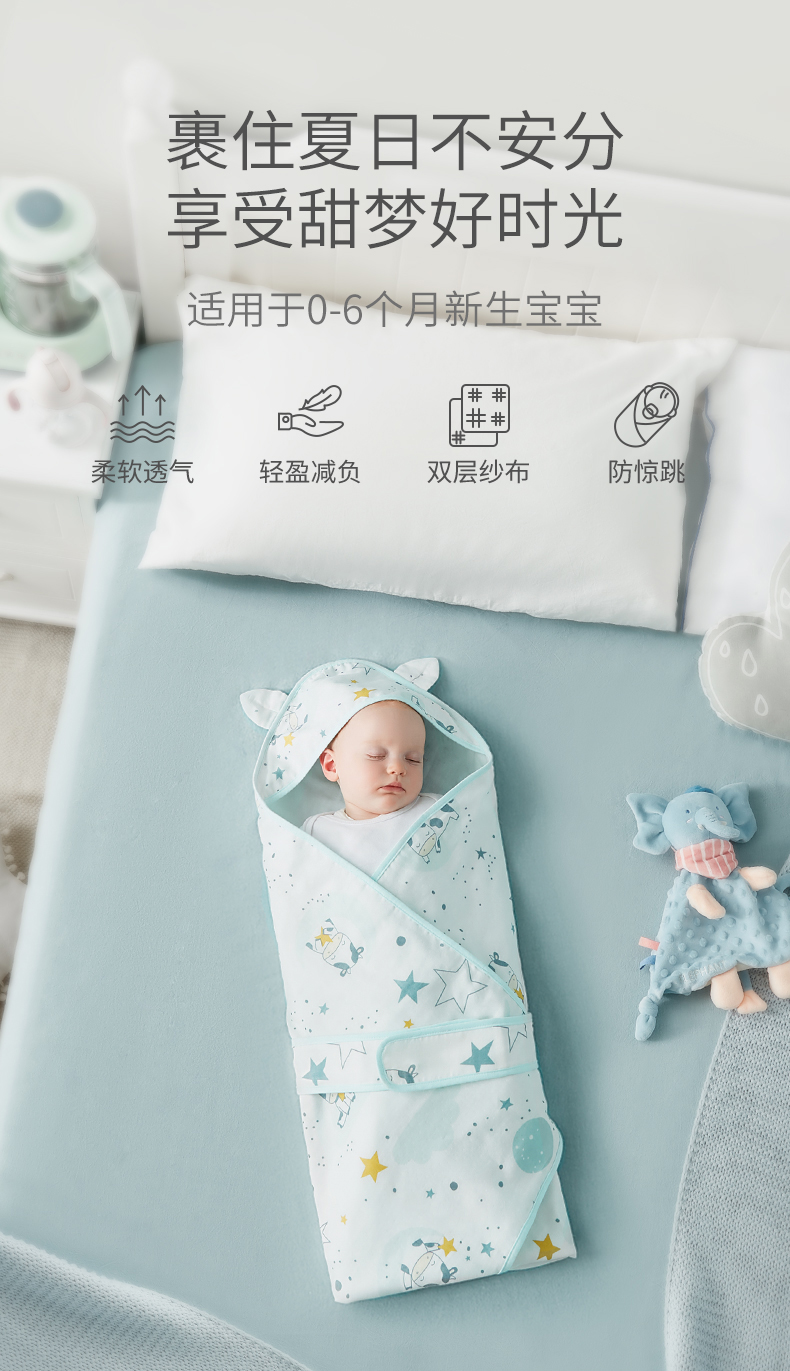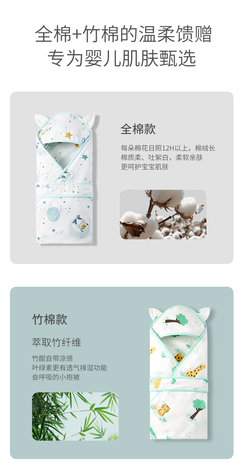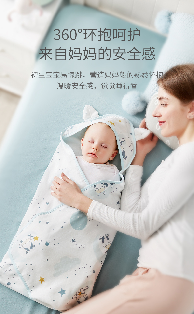 可优比新生儿包被婴儿抱被秋冬加厚被子可拆内胆襁褓婴儿初生用品