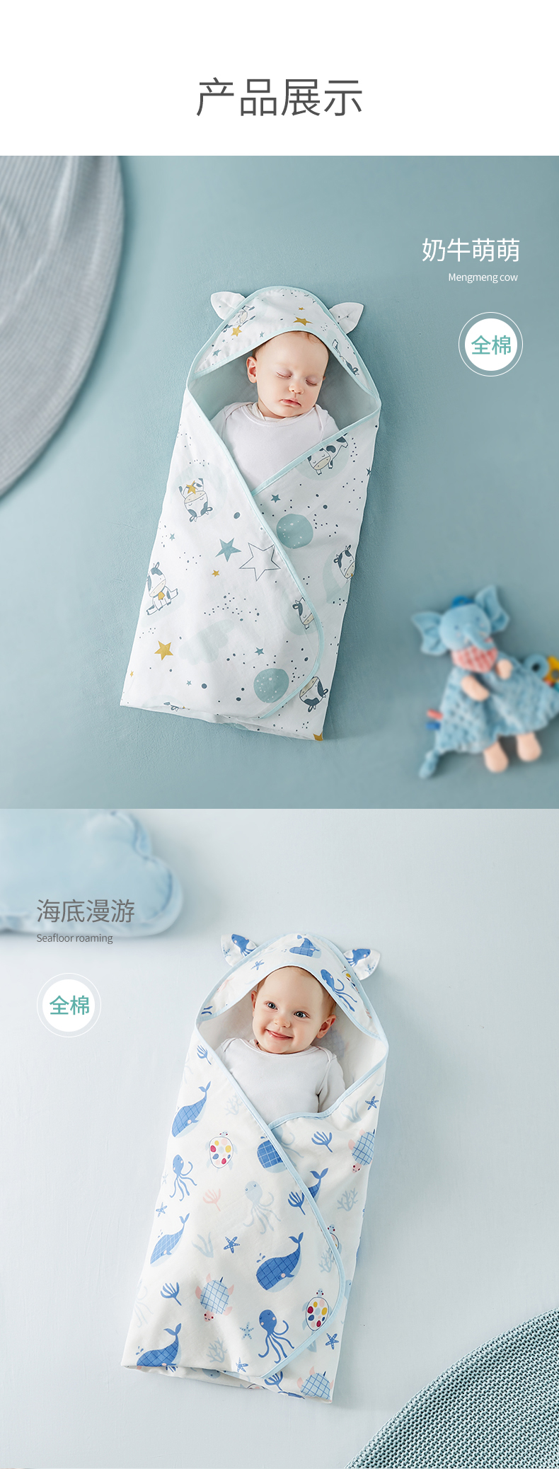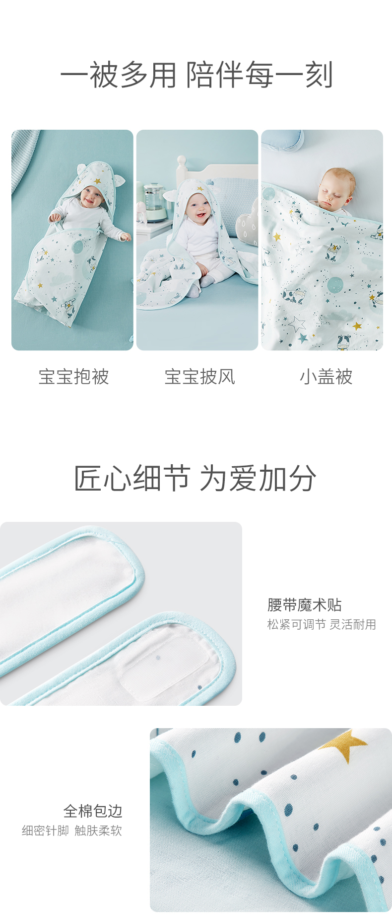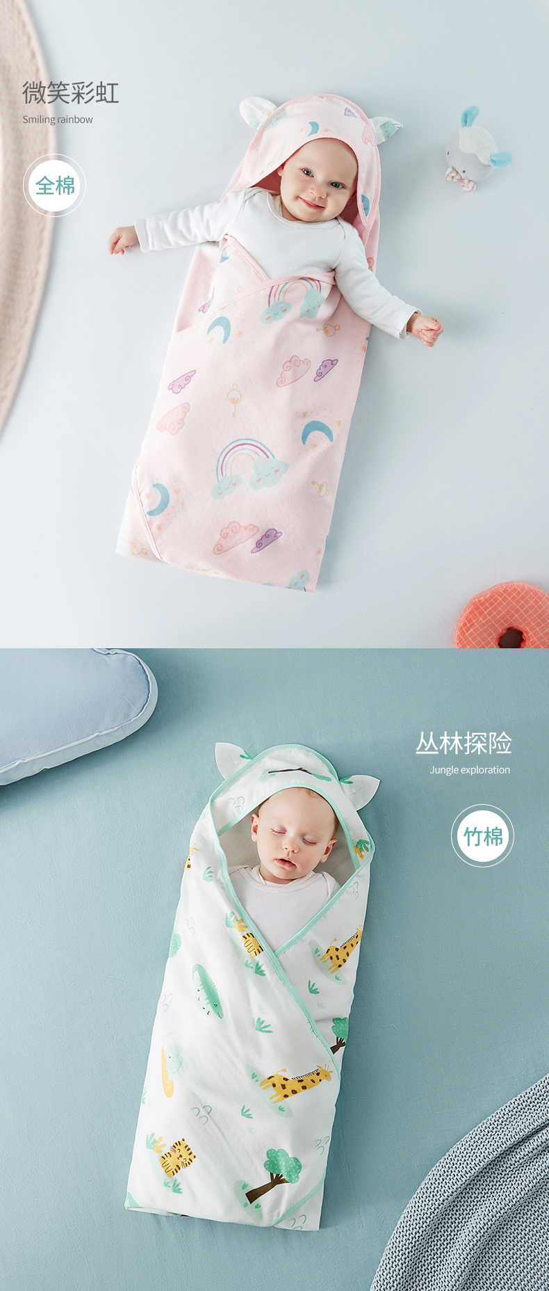 可优比新生儿包被婴儿抱被秋冬加厚被子可拆内胆襁褓婴儿初生用品