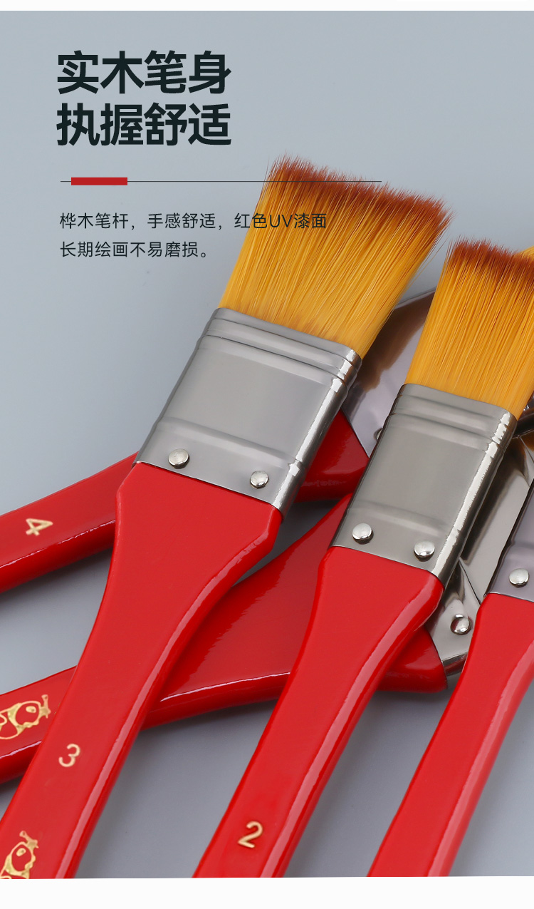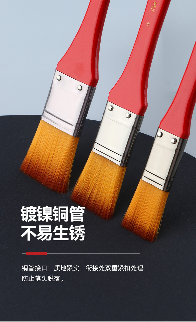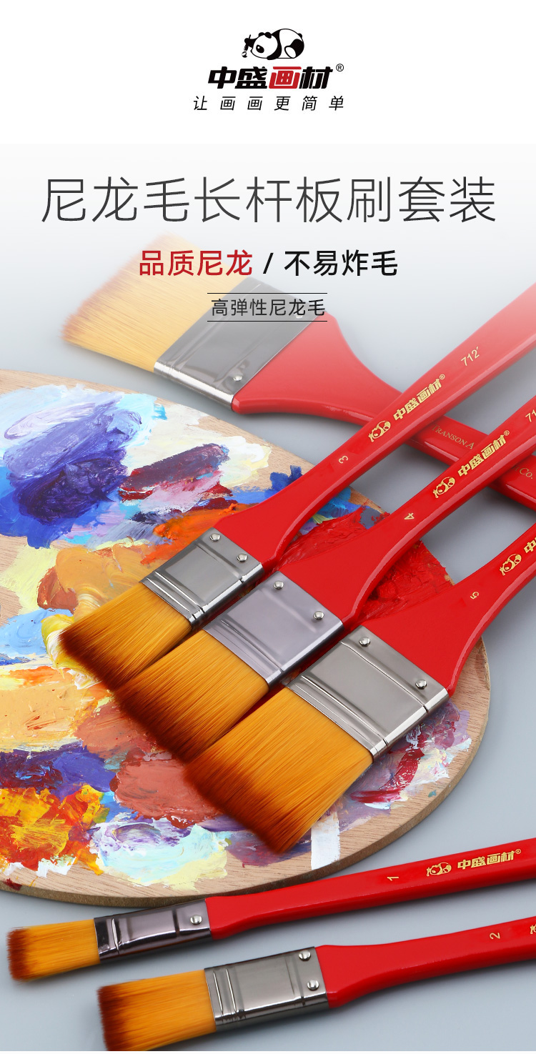 中盛画材712尼龙毛平头红色长杆板刷画笔油画丙烯用板刷画刷底纹
