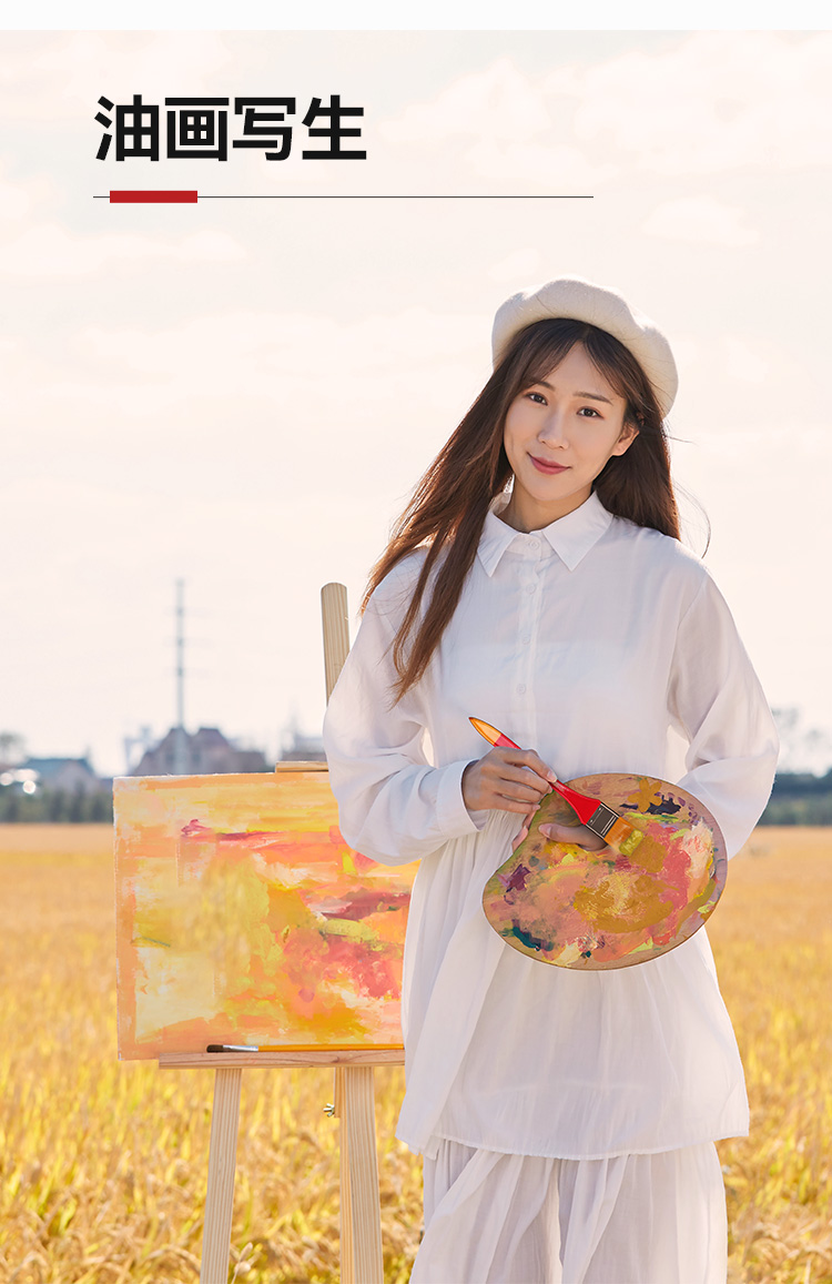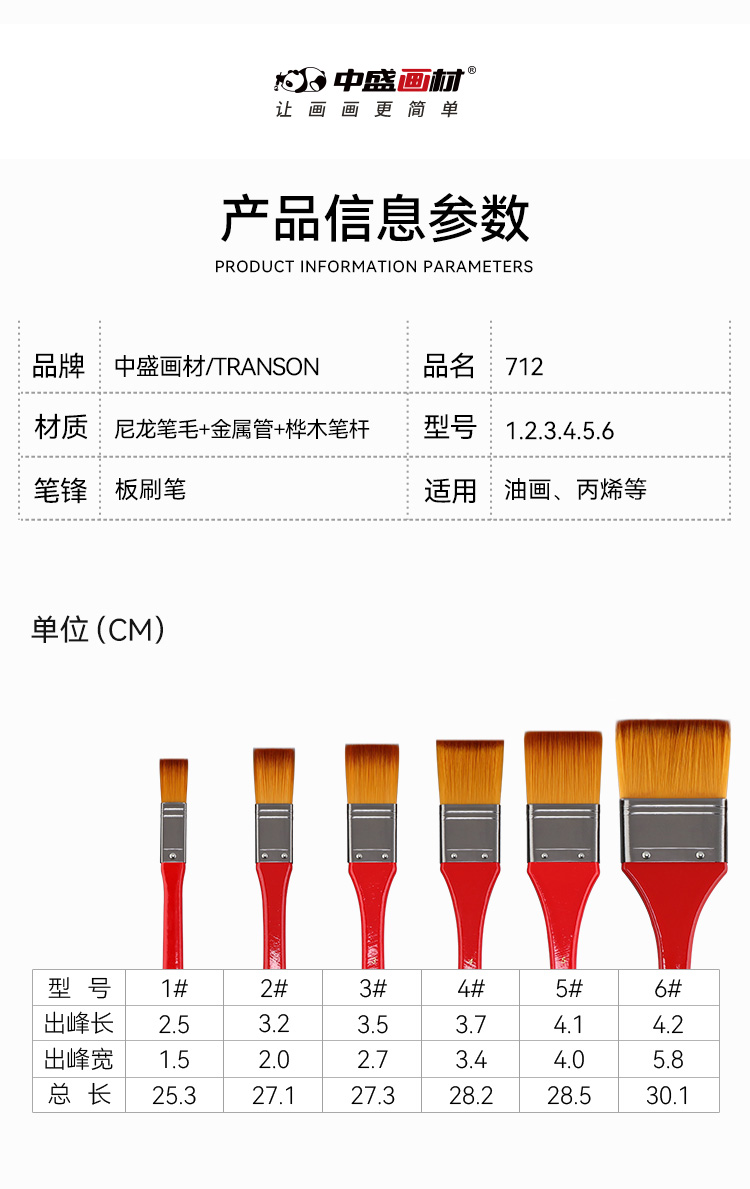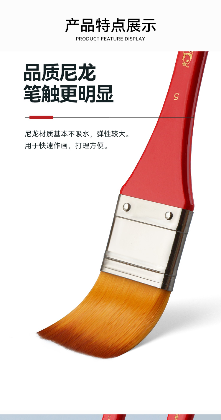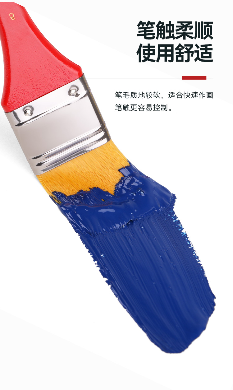 中盛画材712尼龙毛平头红色长杆板刷画笔油画丙烯用板刷画刷底纹