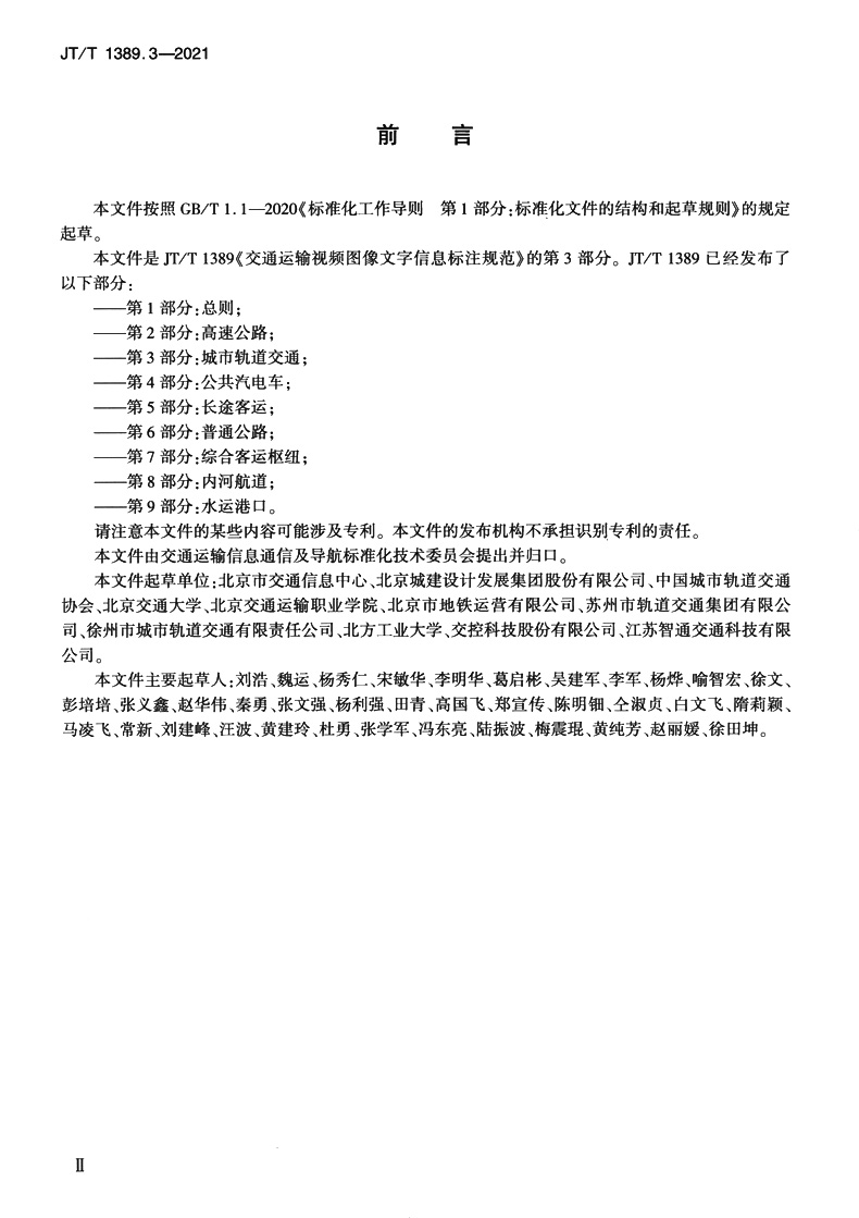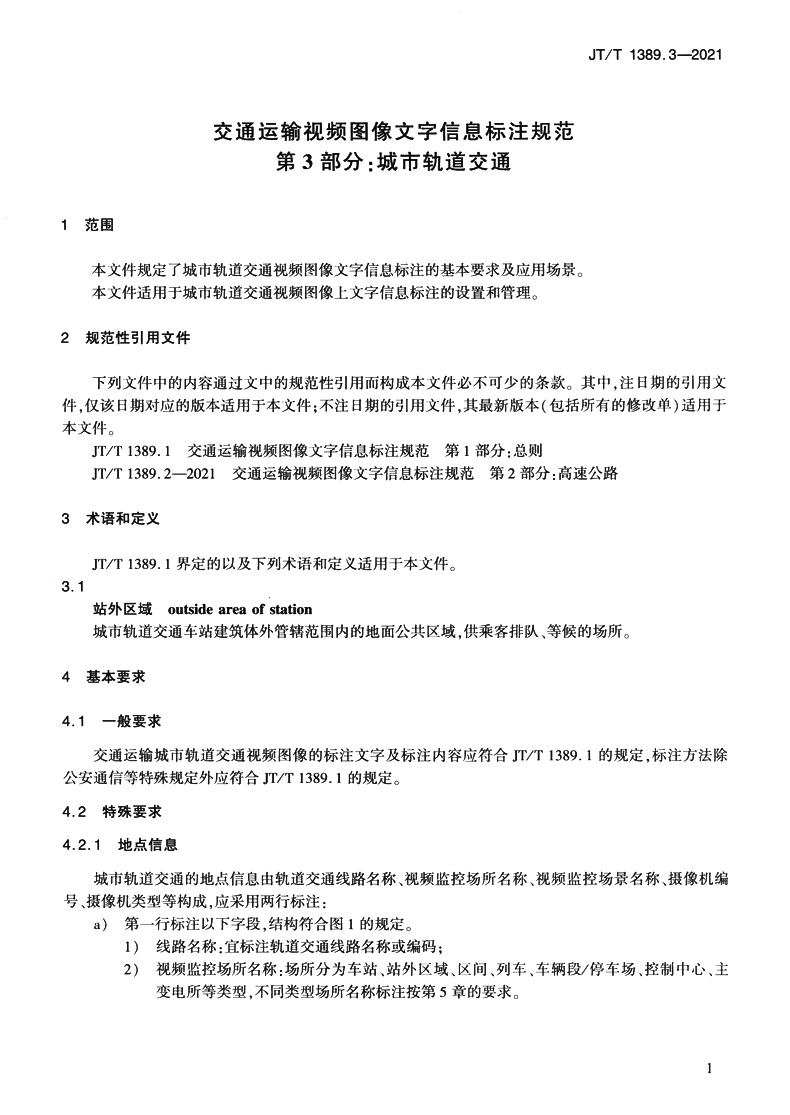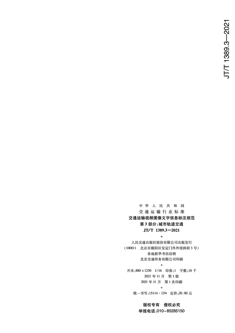 书名:交通运输视频图像文字信息标注规范 第3部分:城市轨道交通(JT/T 1389.3—2021)