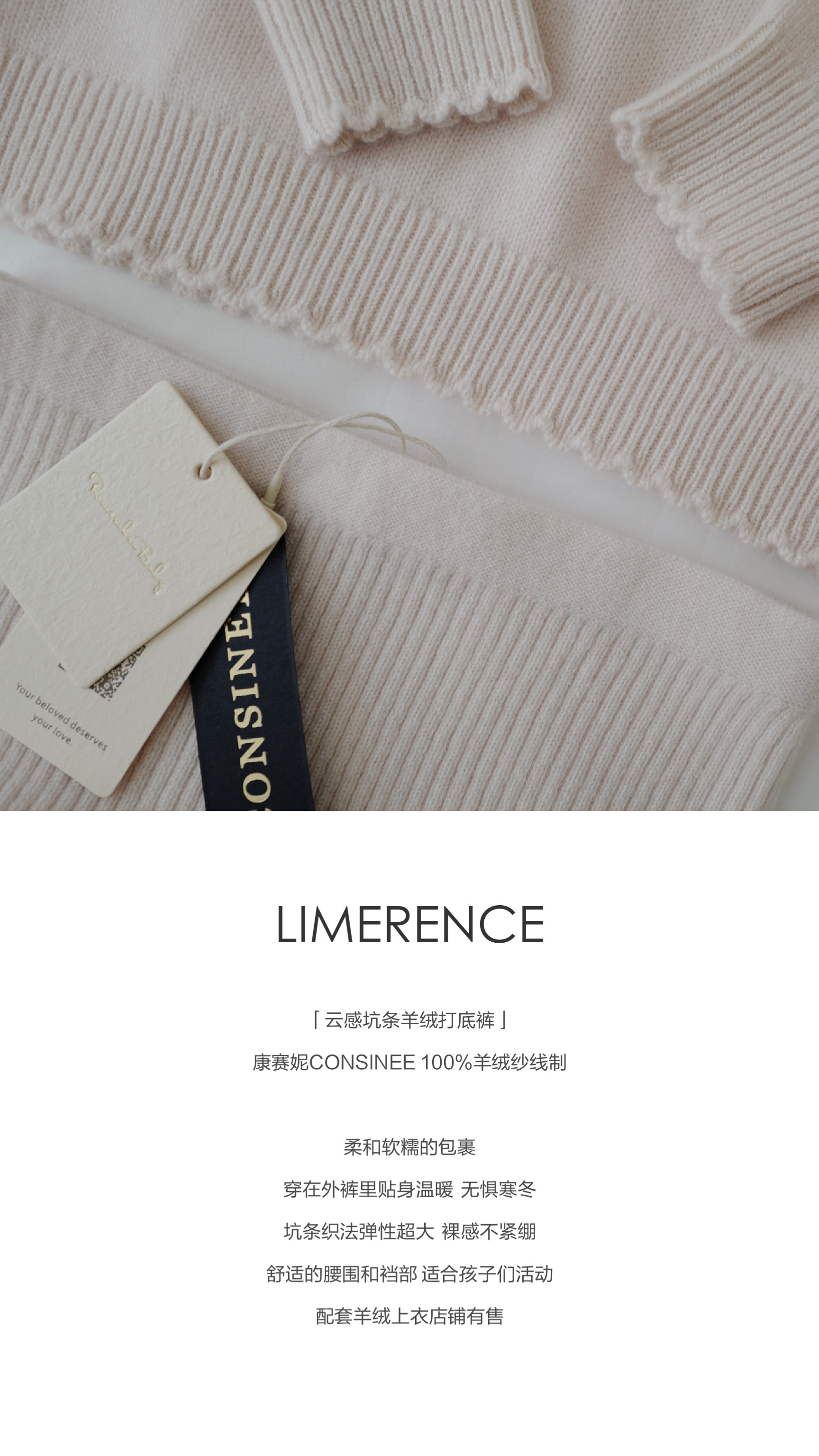 现货 / LIMERENCE | 康赛妮100%羊绒 云感坑条羊绒打底裤