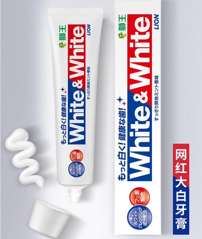 【双十一 爆品】狮王(Lion)White&white美白牙膏150g×3经典大白管去黄去渍