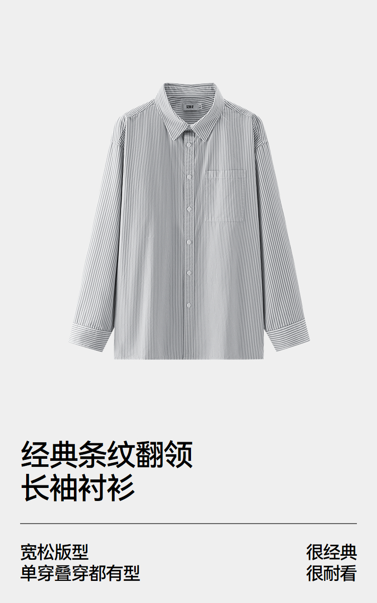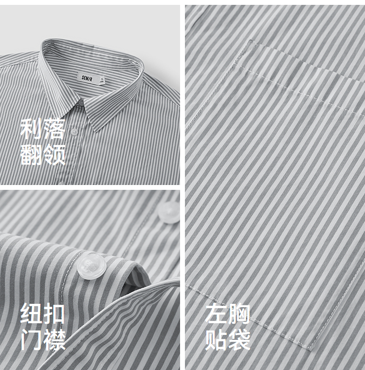 商场同款|森马长袖衬衫男春季纯棉翻领上衣2026新款经典条纹百搭