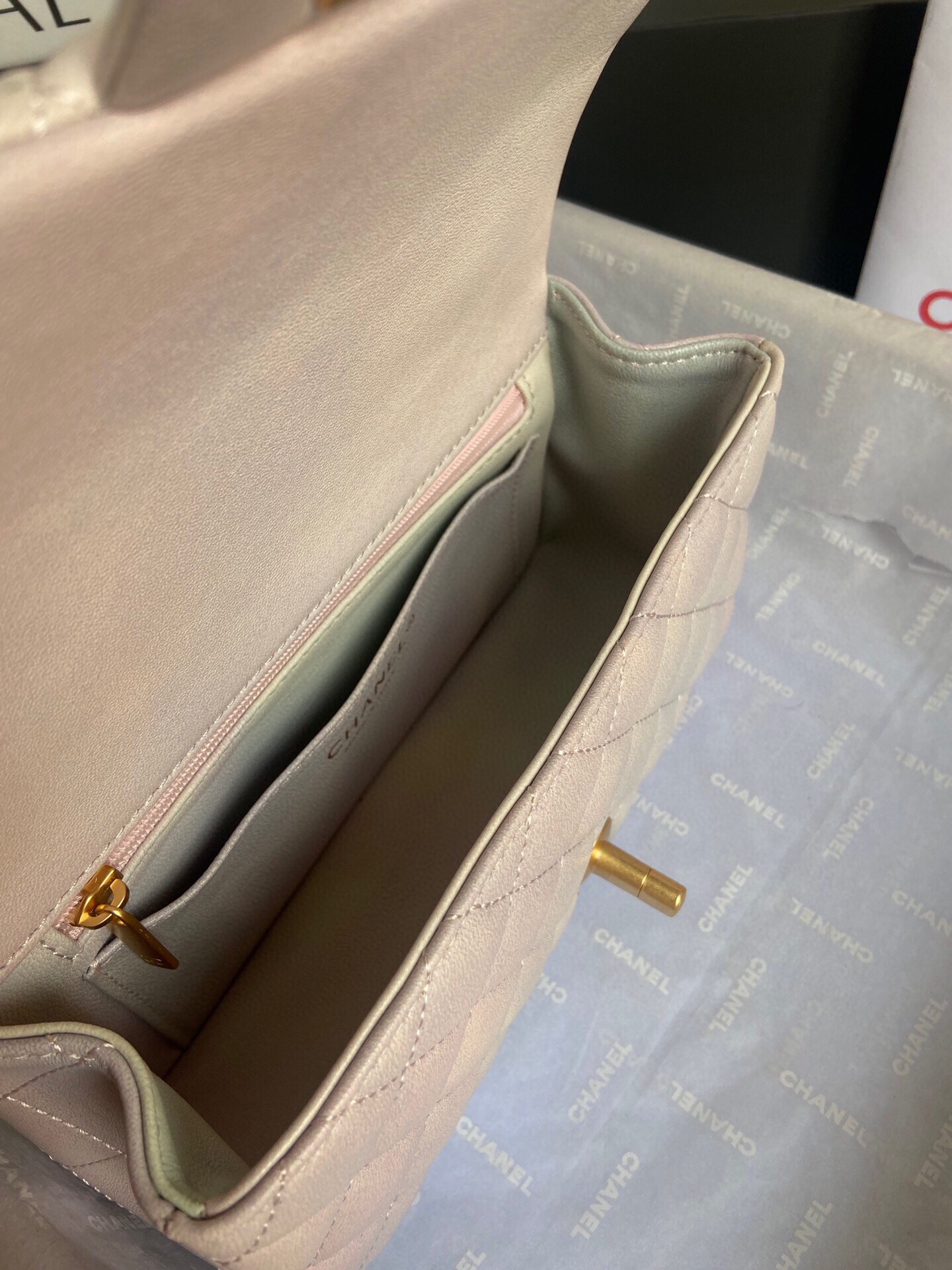 夏季特惠💰1150 原单香奈儿 Chane🎶 Mini CfHandle珠光色AS2431 夏天的味道 完全无法抗拒这只小可爱 这个颜色简直无敌好看!经典款外形 加了个手提瞬间觉得这个包多了一分俏皮!多了一分实用性!容量大小刚好合适!可以放手机日常超百搭