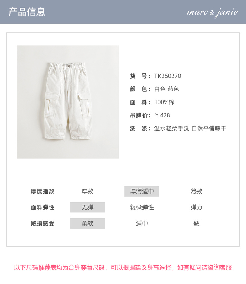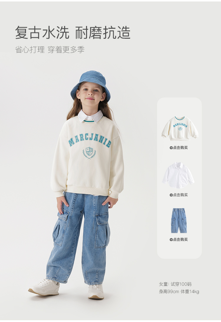 马克珍妮女童潮流百搭工装牛仔裤 儿童裤子2025年春装新款250270