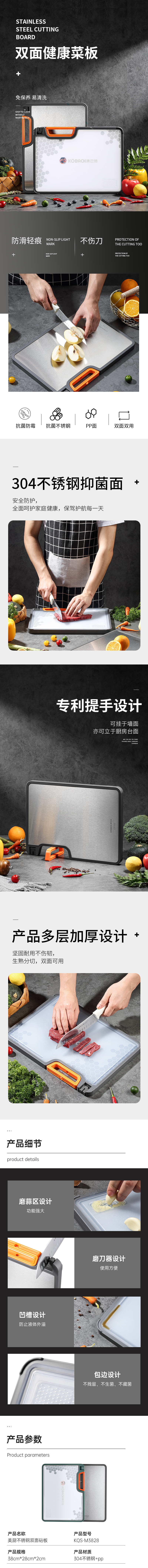 【632优选】康巴赫 美厨不锈钢双面砧板 KQS-M3828-新包装一SH1138