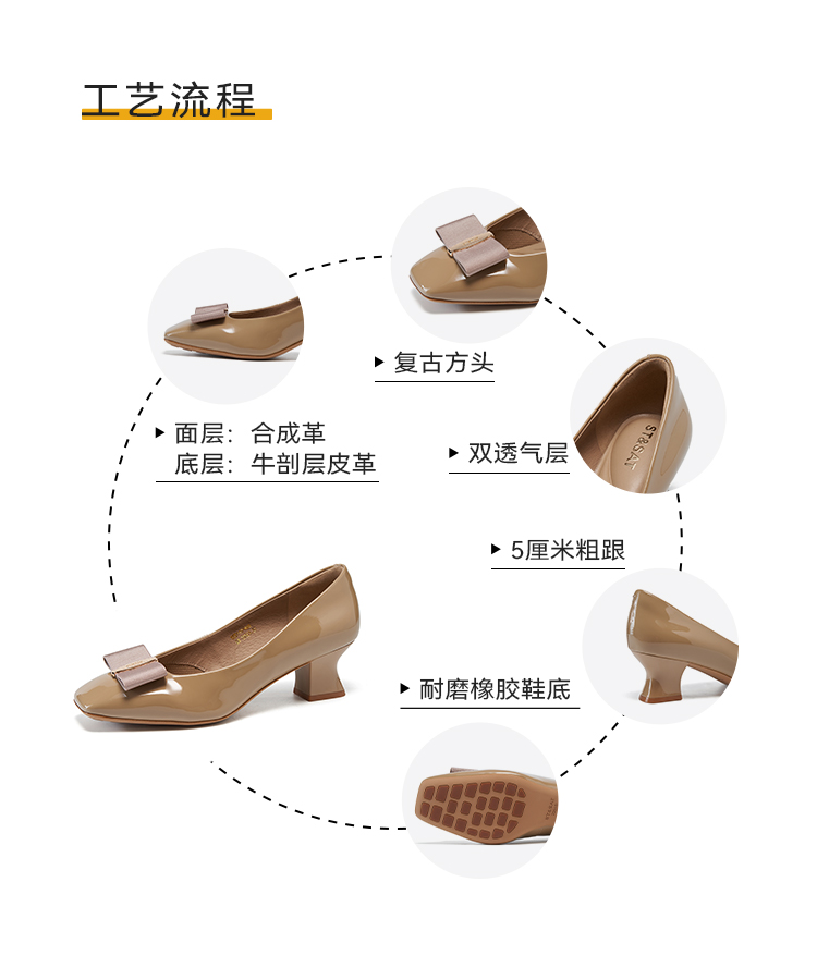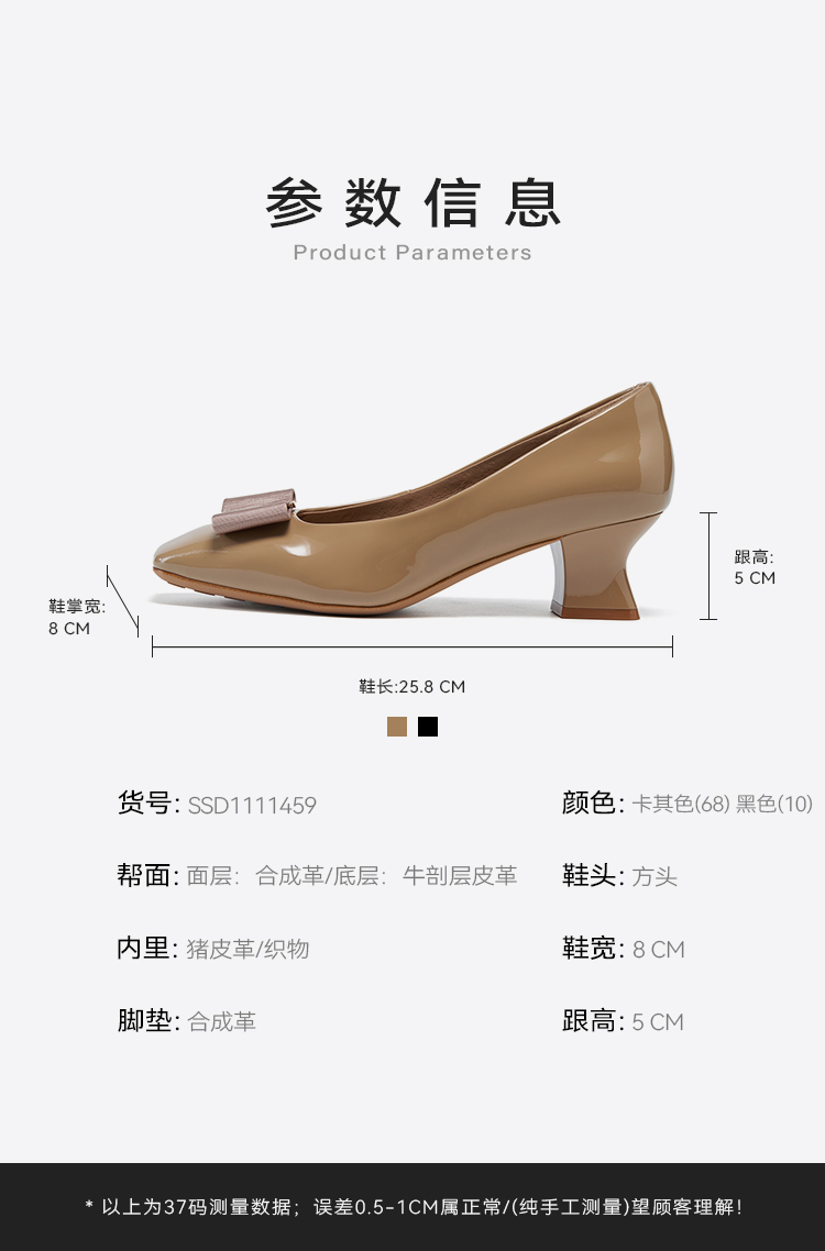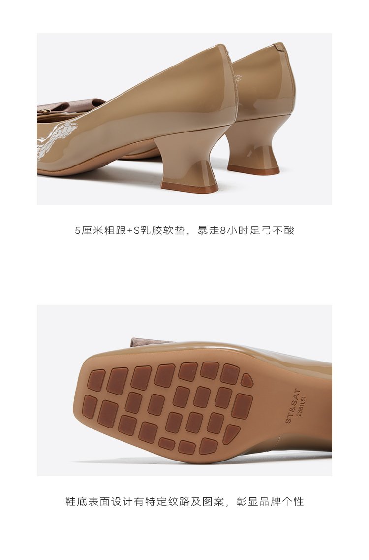 【5CM粗跟】星期六优雅蝴蝶结方头粗跟单鞋SSD1111459