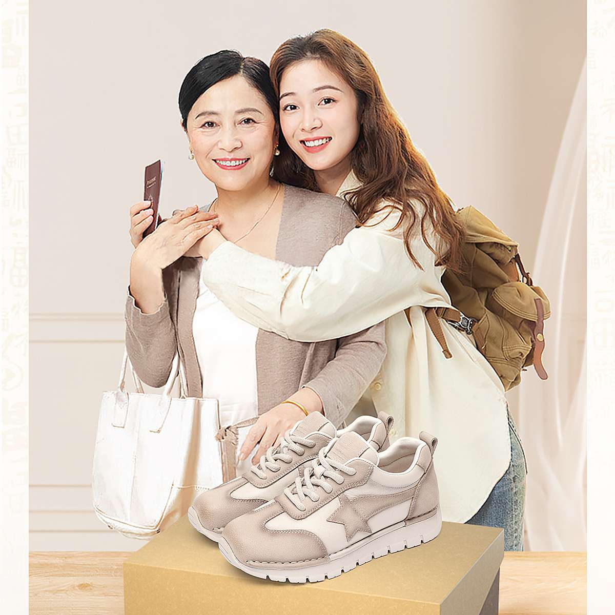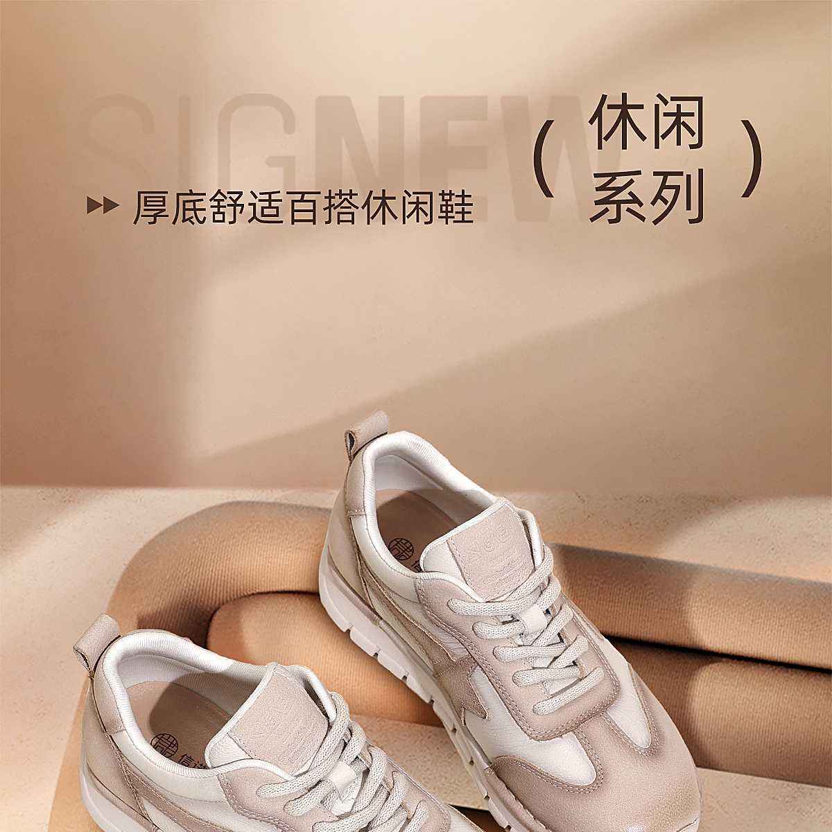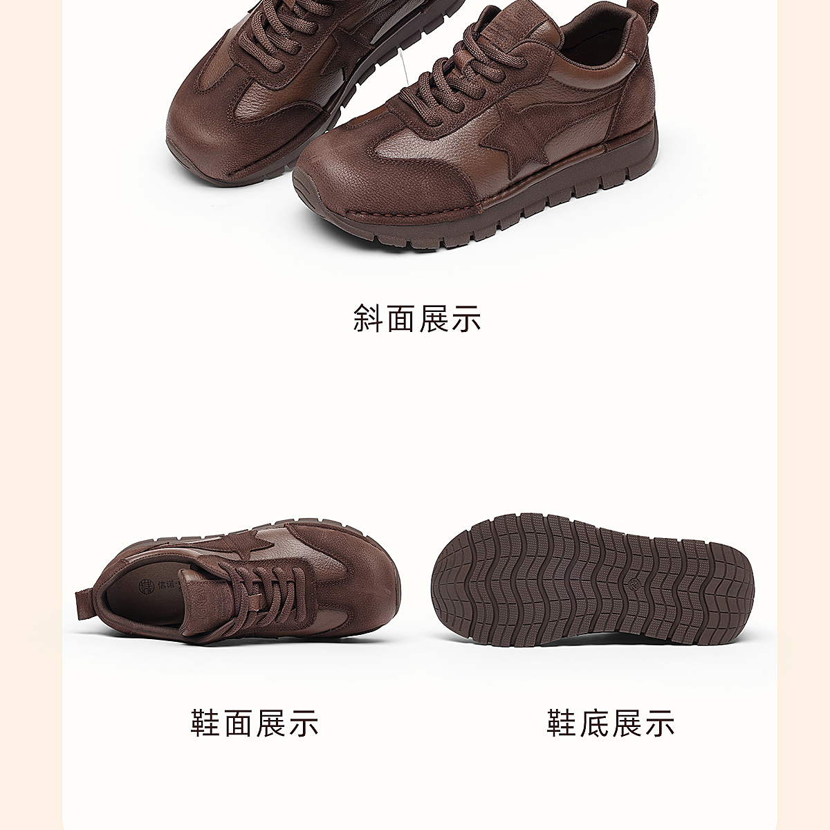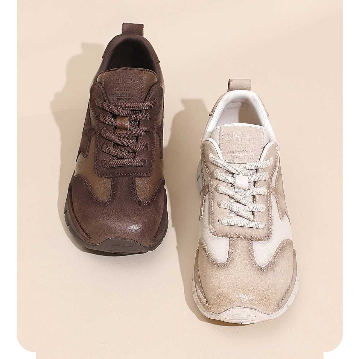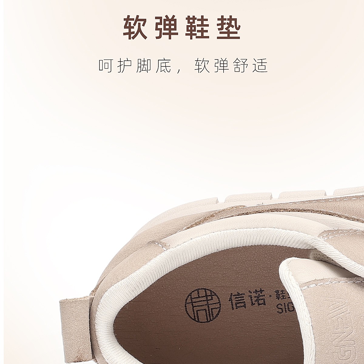 信诺妈妈鞋厚底真皮女鞋休闲运动鞋复古阿甘鞋德训鞋2026春季新款X6C020-07