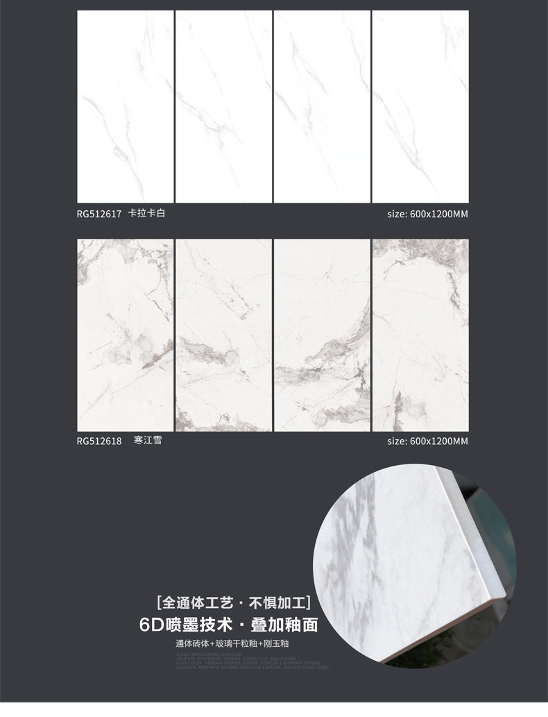 客厅墙砖大理石全瓷白色柔光厨卫600x1200岩板背景墙寒江雪地砖