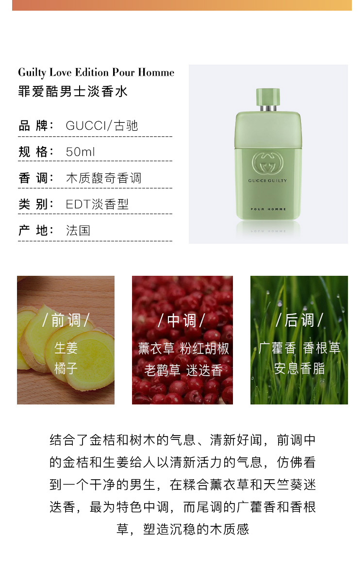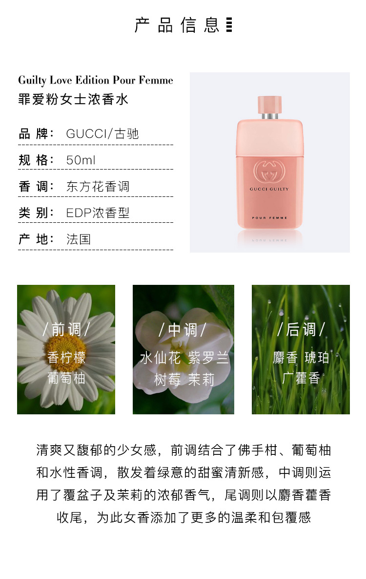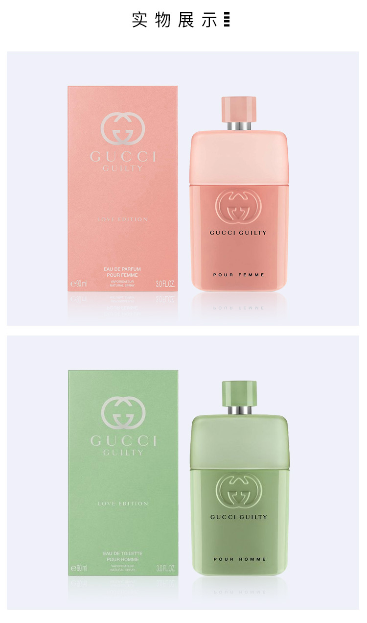1LPY Gucci古驰香水情人节限定情侣对香罪爱粉酷女士浓香男士淡香礼物