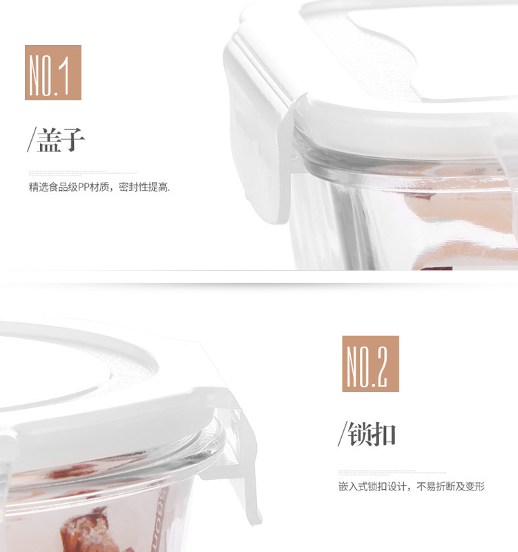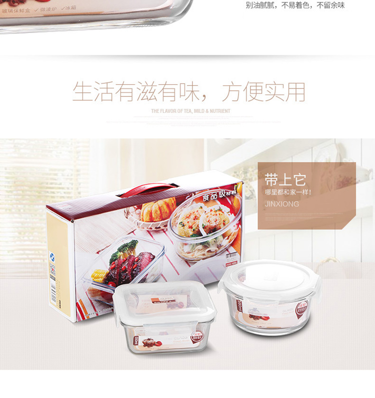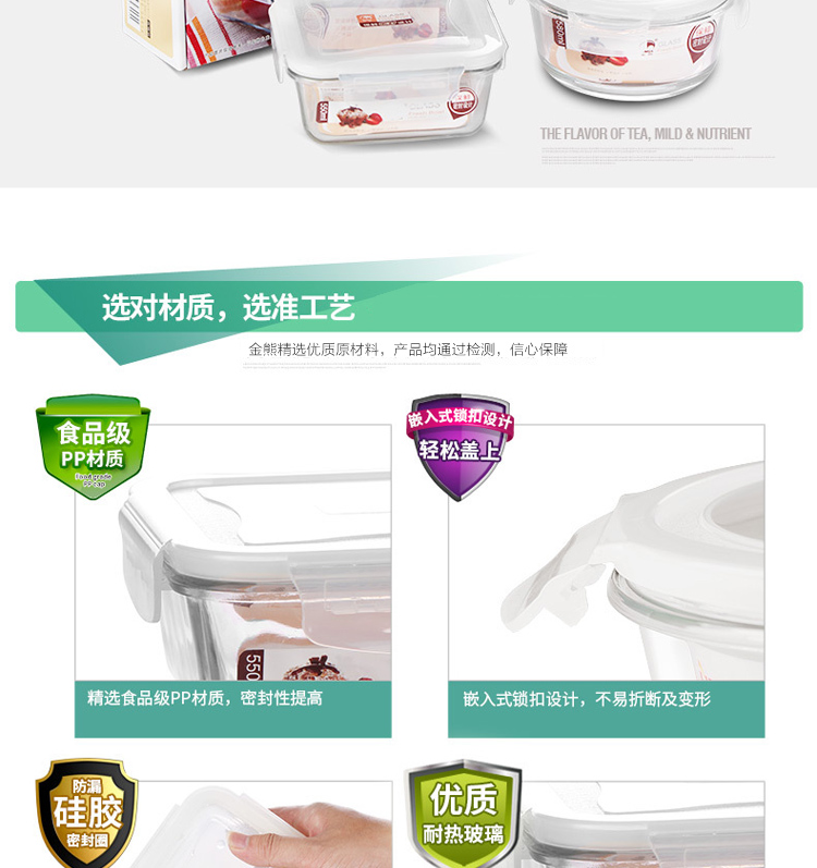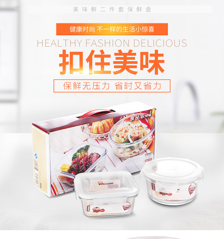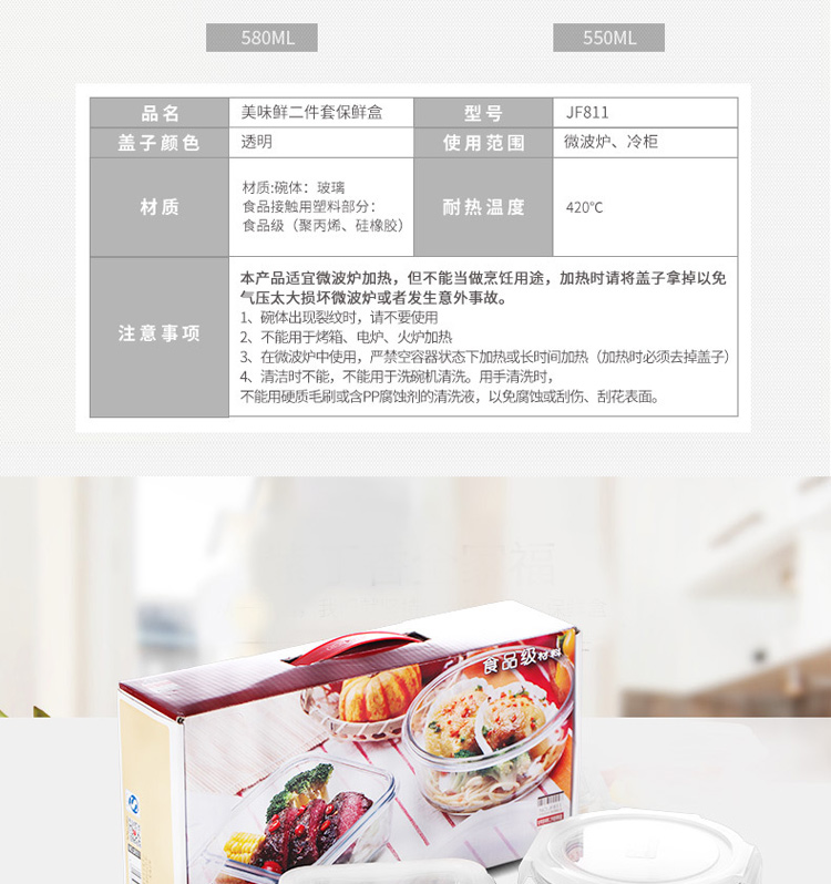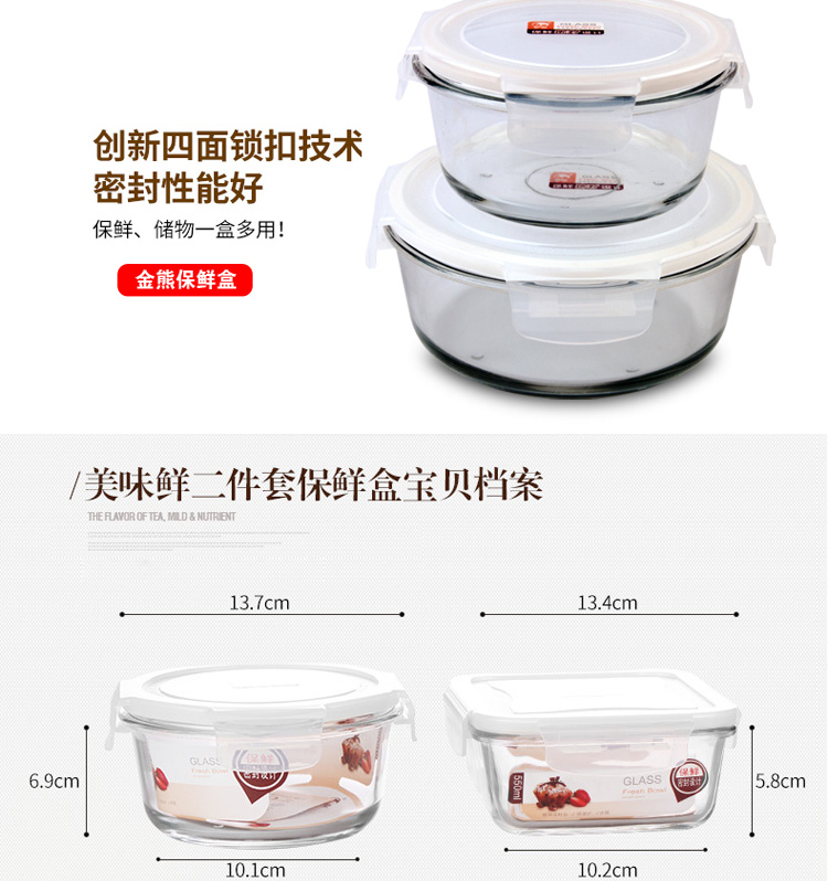 金熊 耐热玻璃保鲜盒饭盒微波炉碗密封罐便当盒两件套装(580ML+550ML) JF811