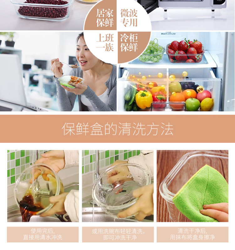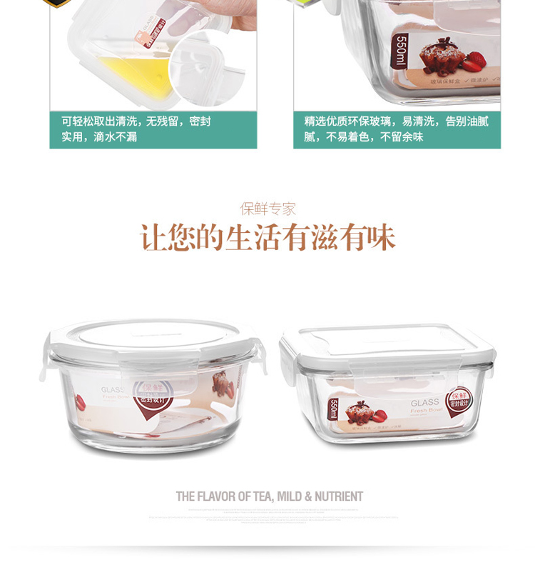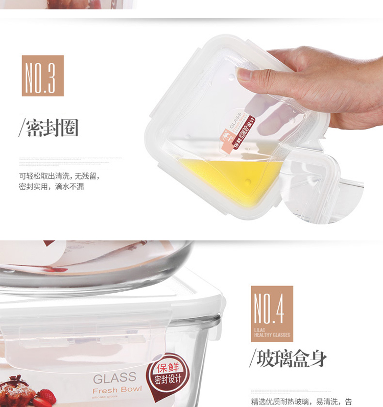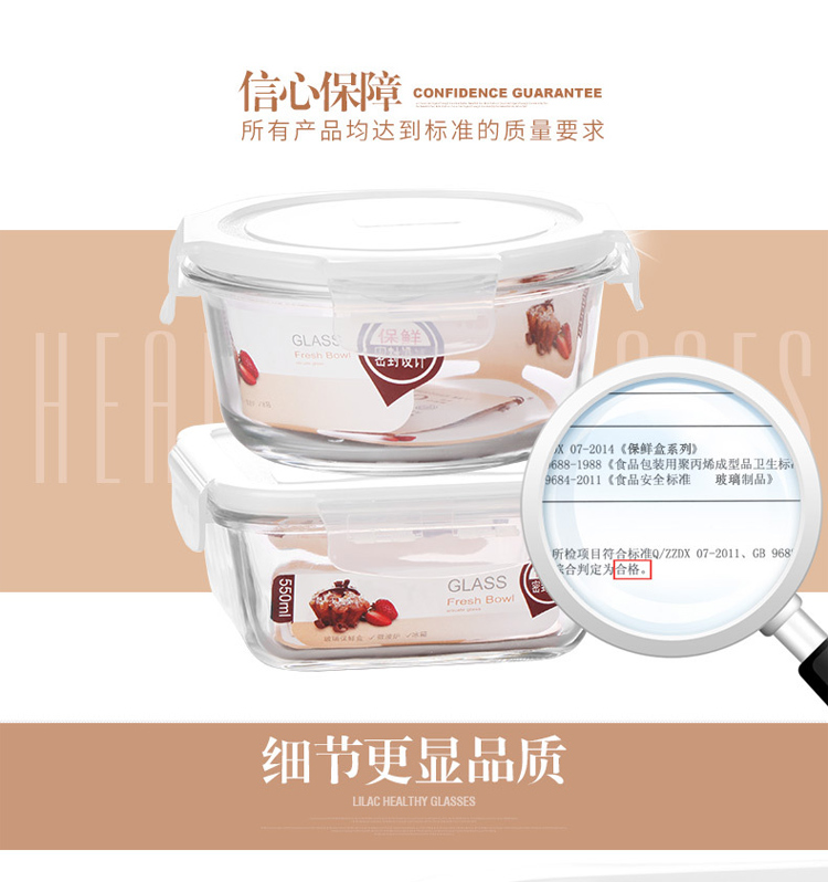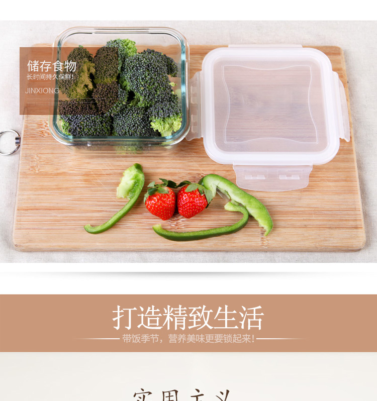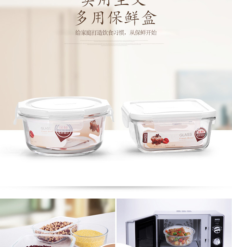 金熊 耐热玻璃保鲜盒饭盒微波炉碗密封罐便当盒两件套装(580ML+550ML) JF811
