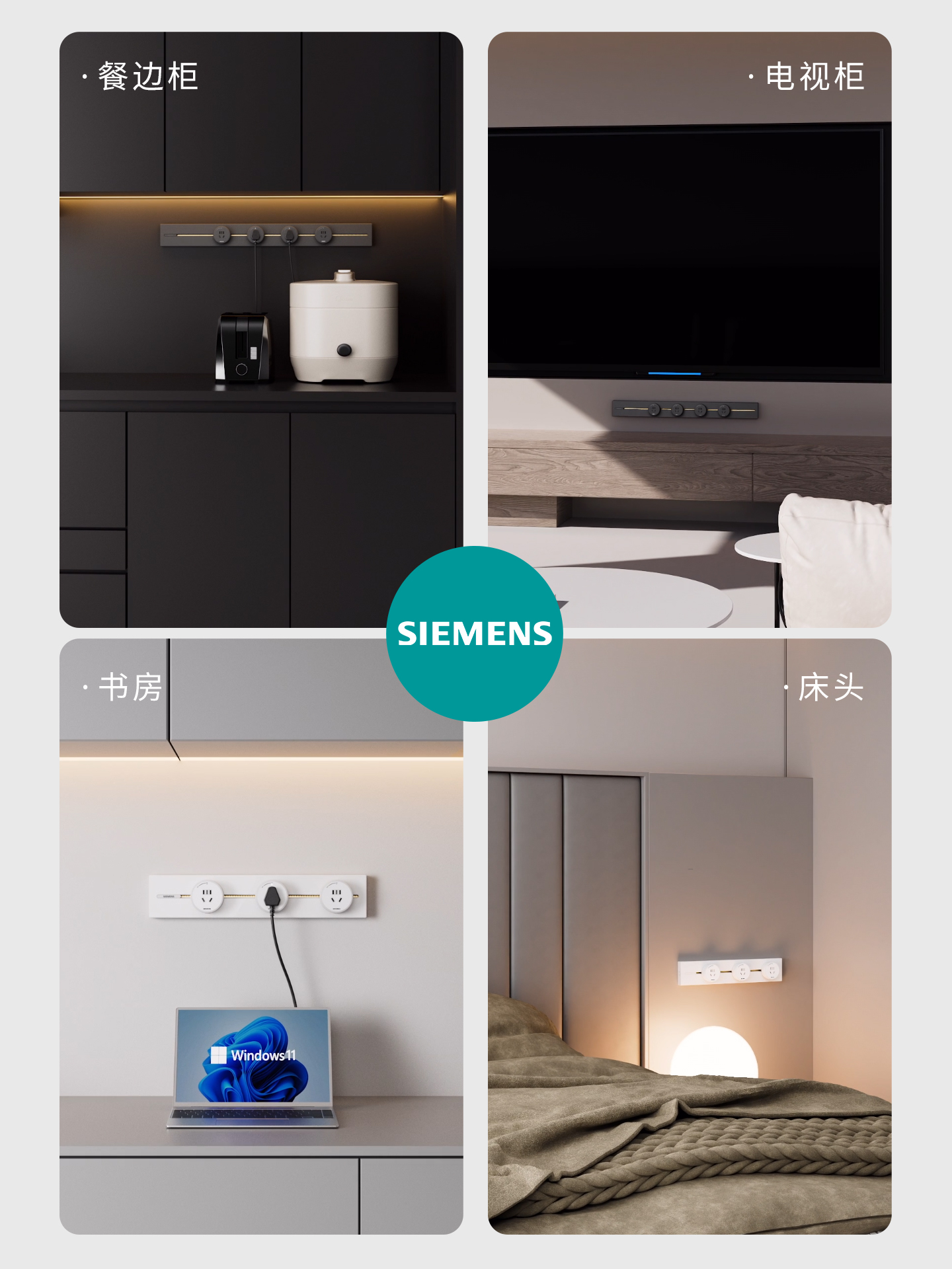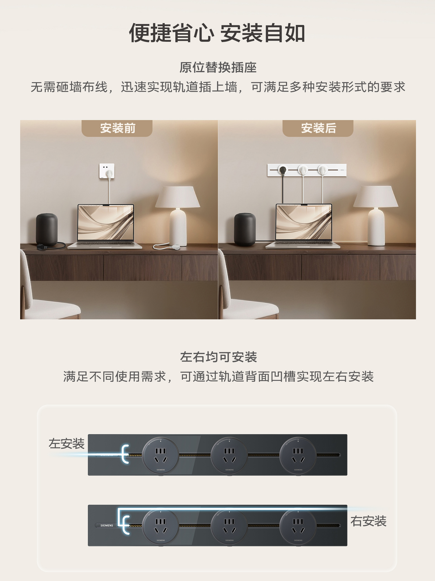 西门子奶油风轨道插座S8系列餐边柜厨房间岛台家用排插