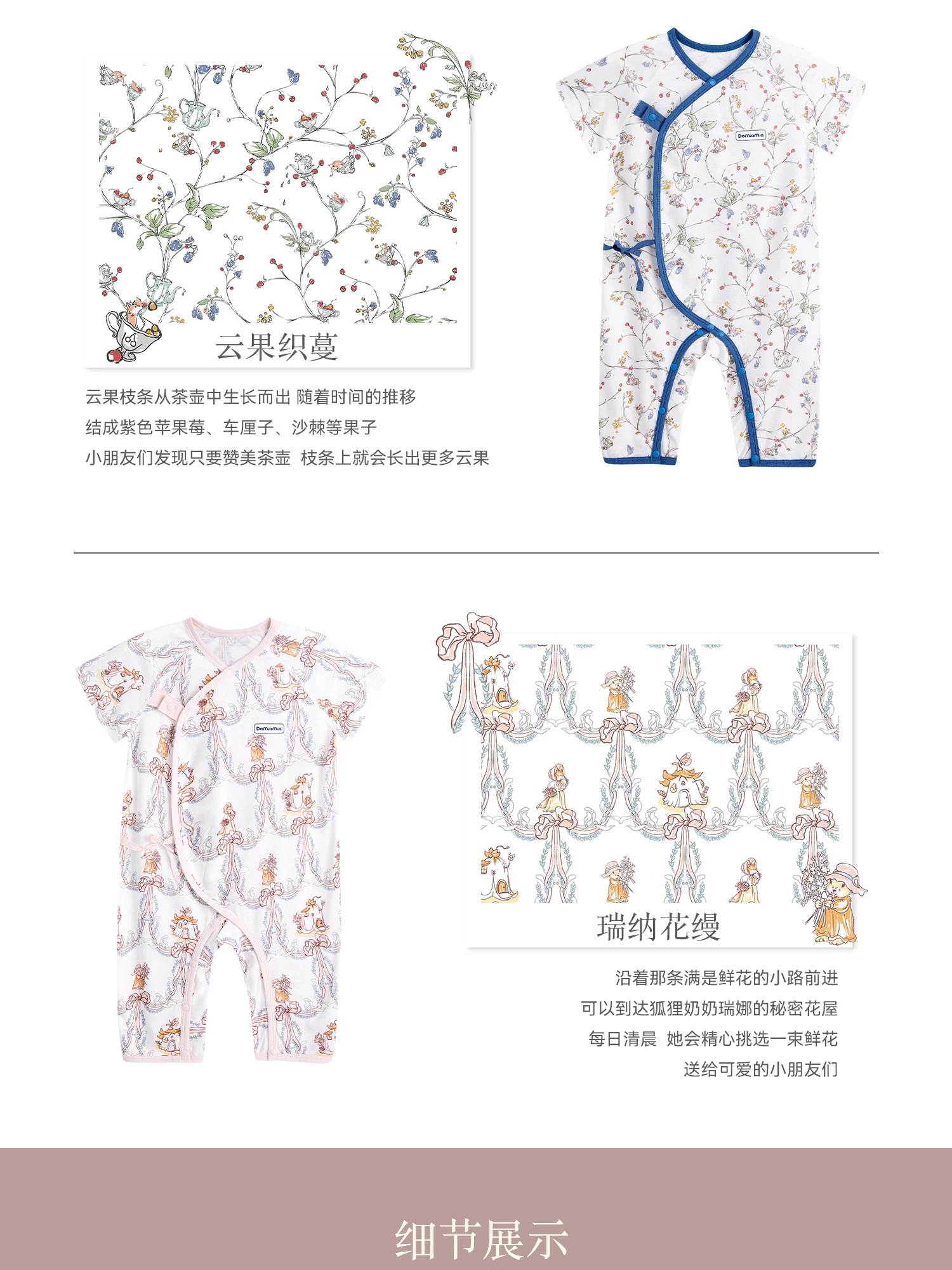 Domiamia 女宝宝针织莱赛尔短袖连体衣 夏季薄款婴幼儿连体衣