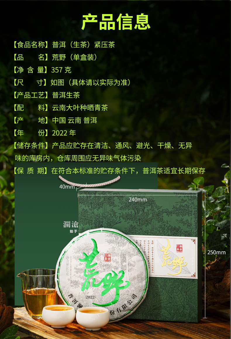 荒野单片装 生茶 357克 2022年