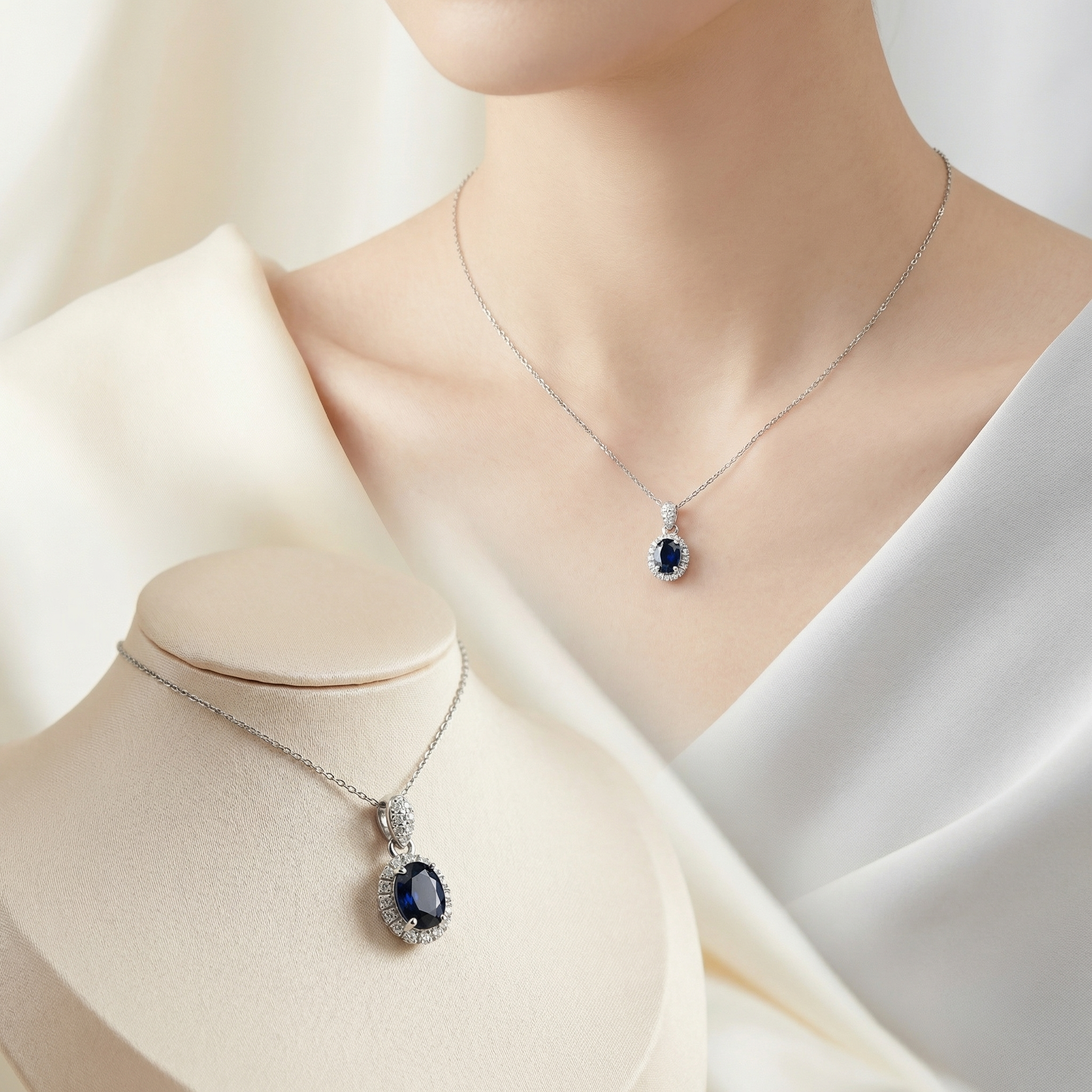 【清明节宝石专场】宝石专场活动:89号蓝宝石三件套(耳钉4x4,项链4x6,戒指5x5mm )带证书(万物清明·福佑安康)