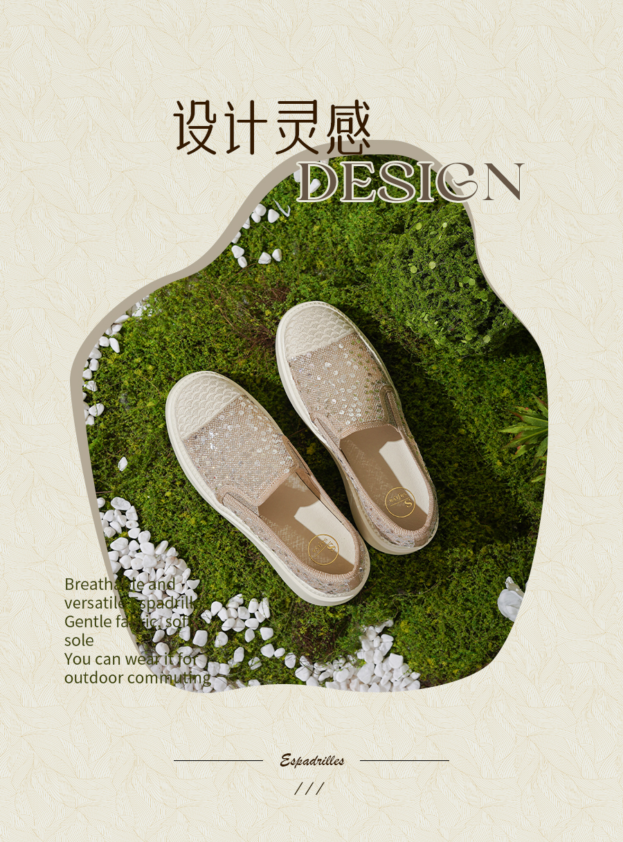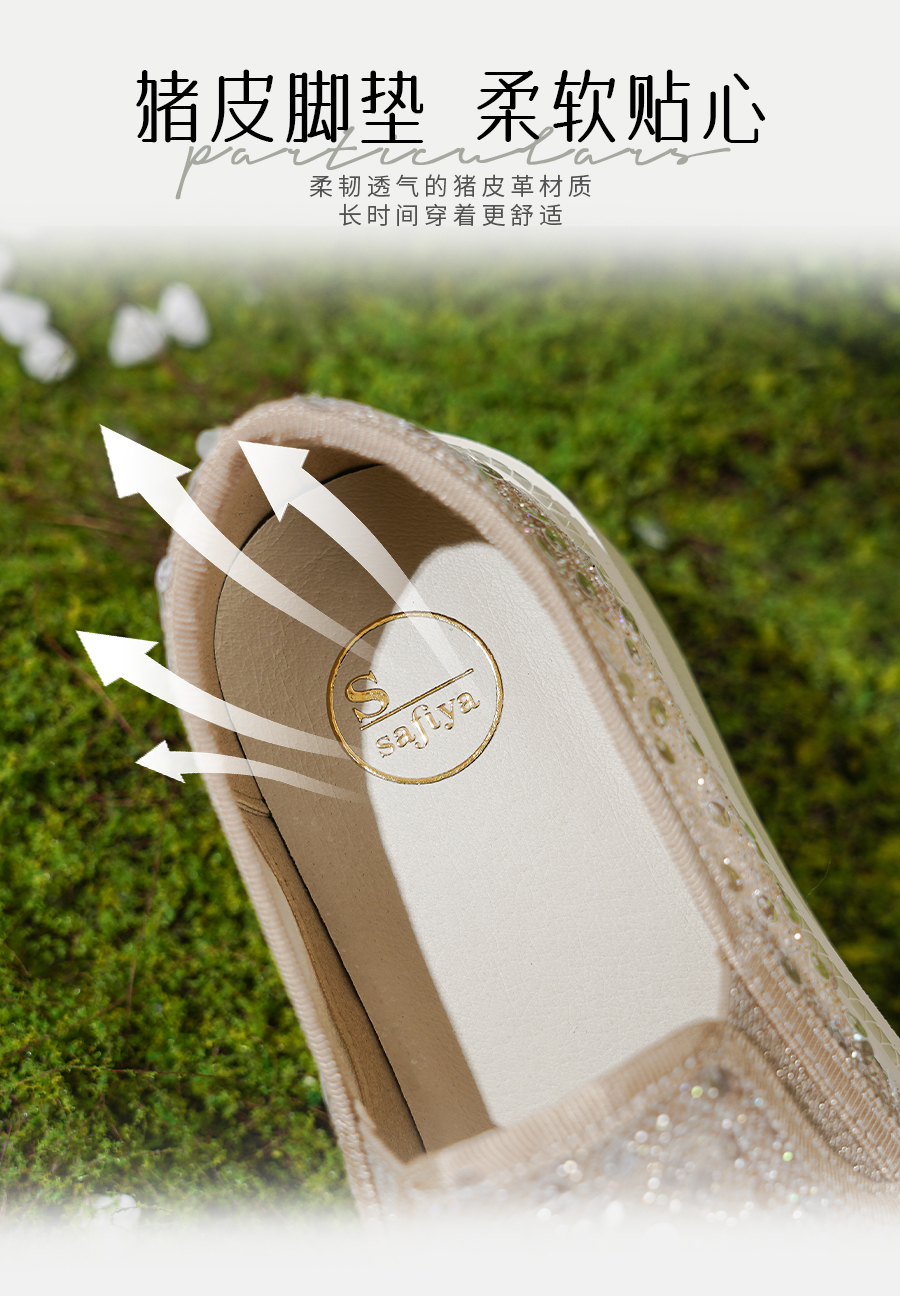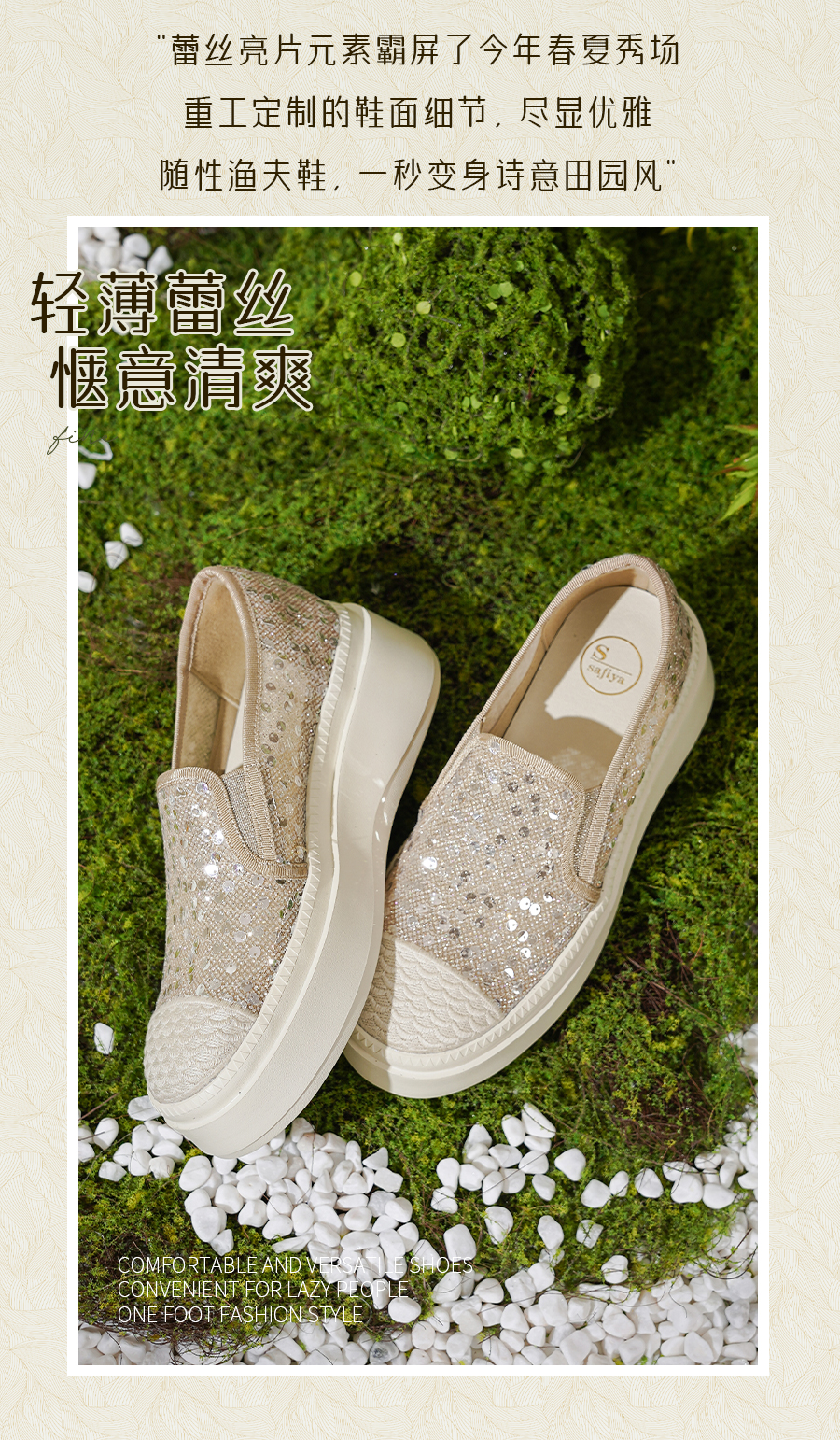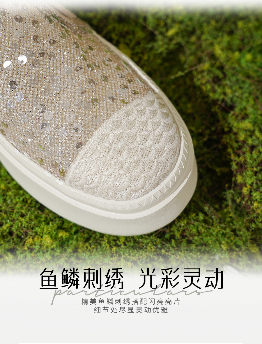 Safiya/索菲娅2025春夏百搭懒人编织透气亮片蕾丝渔夫鞋 SFD1112257