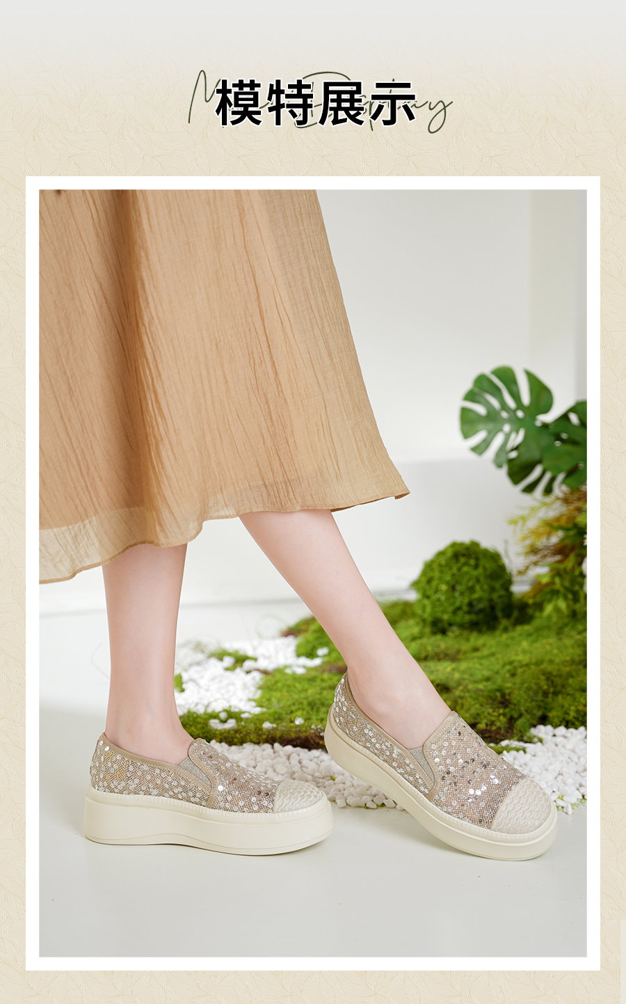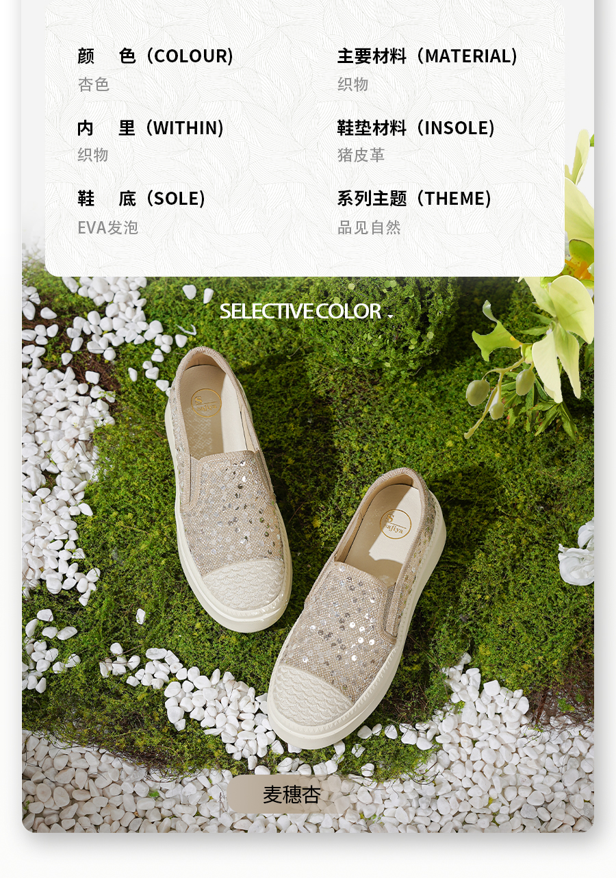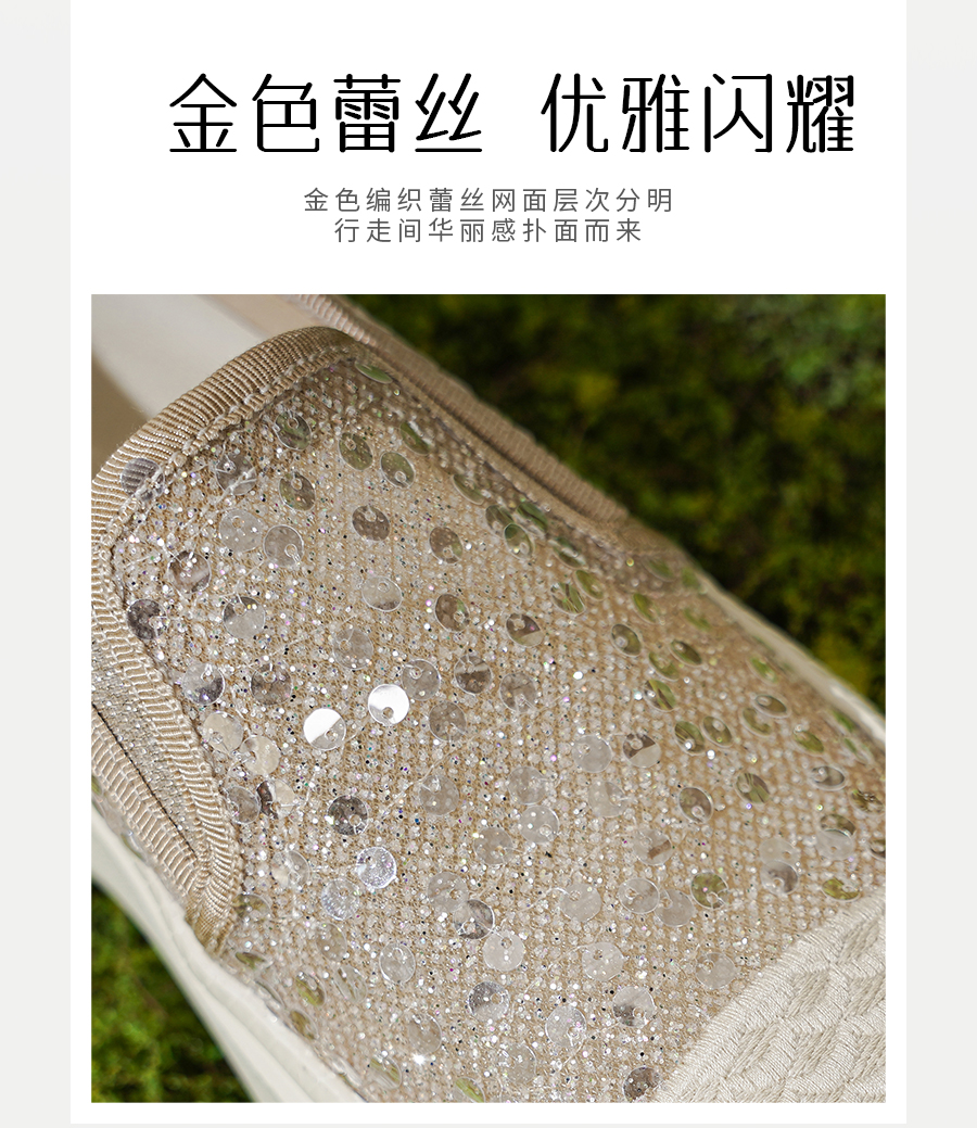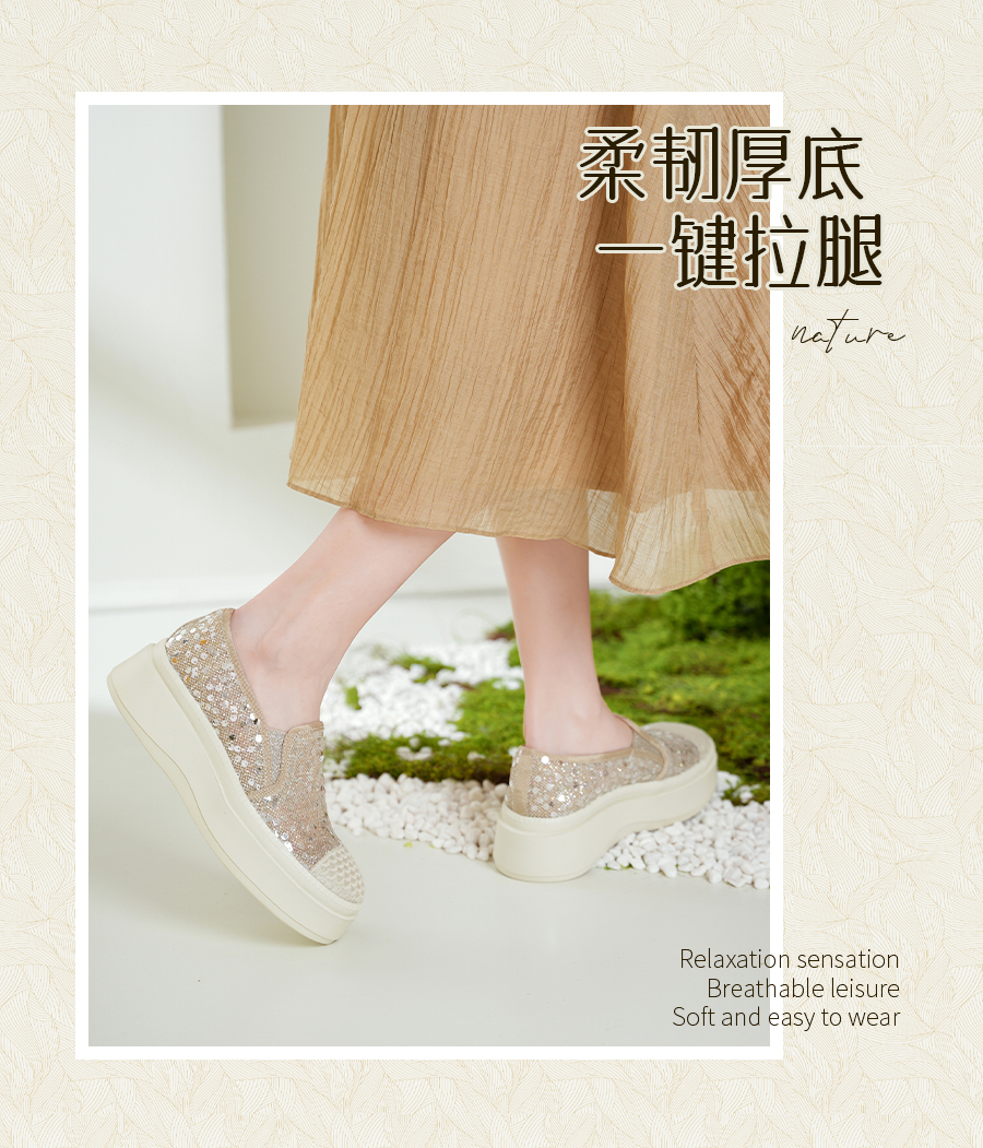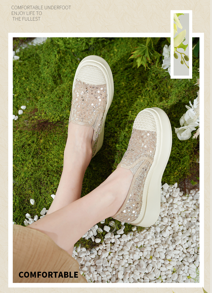 Safiya/索菲娅2025春夏百搭懒人编织透气亮片蕾丝渔夫鞋 SFD1112257