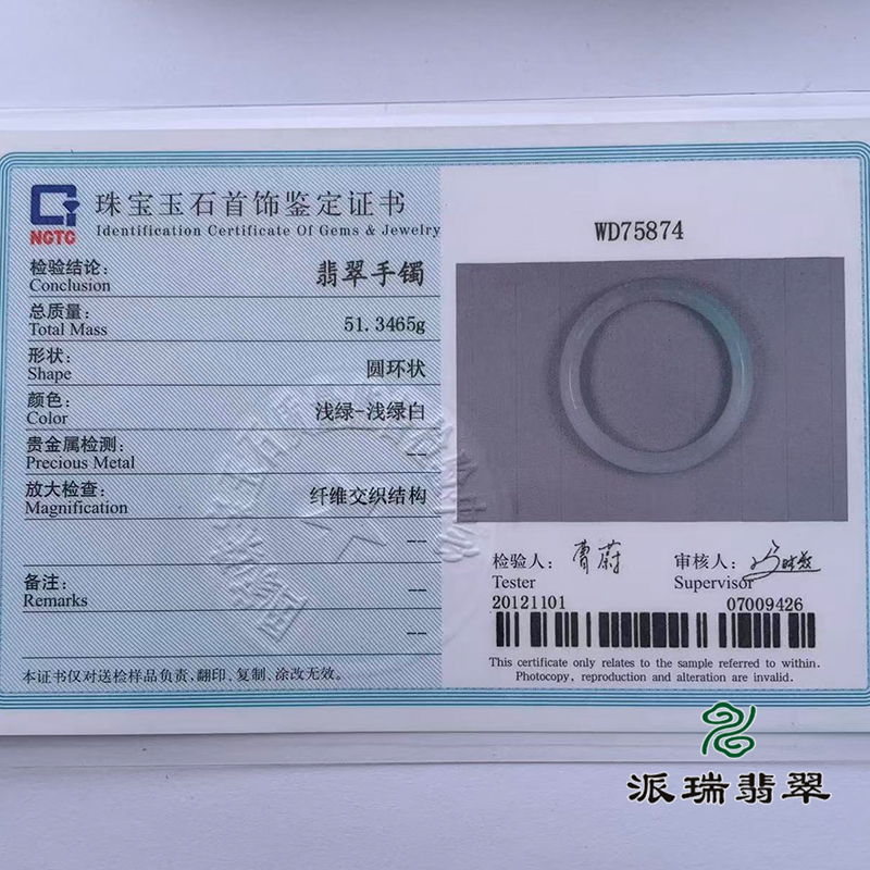 派瑞翡翠 翡翠手镯 糯种 浅绿