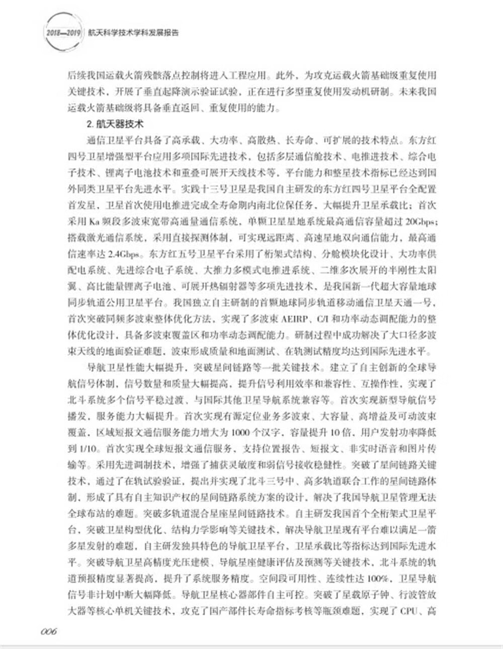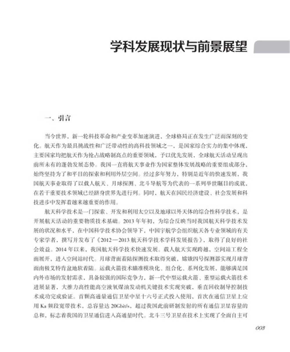近年来,在载人航天工程、月球探测工程、北斗导航工程等重大工程牵引下,中国航天领域突破了一系列关键技术,产生了一大批技术成果,航天科学技术取得了新的重要发展。受中国科协委托,中国宇航学会第三次承担了《航天科学技术学科发展报告》的编纂工作。《2018-2019航天科学技术学科发展报告》由综合报告和10个专业领域报告组成,涵盖了航天领域数二十余个学科专业,以“总体优先,总分结合”的布局,旨在全面总结我国航天科学技术近五年的*新进展,系统阐述我国航天科学技术的发展现状,并通过客观比较我国现状与国外研究进展,研判我国航天科学技术在未来几年的发展方向,并最终为提高我国科技自主创新水平做出贡献。