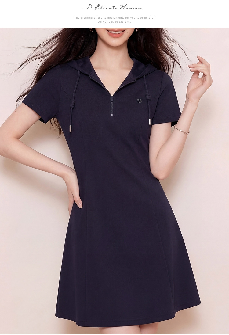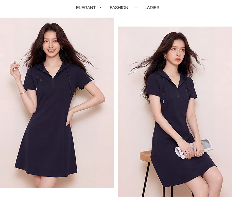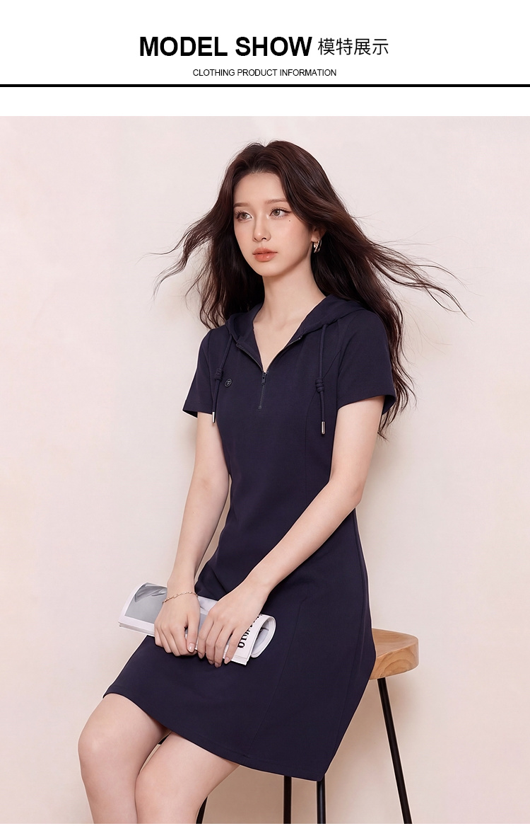奢姿大码女装2026夏季拉链时尚休闲卫衣连衣裙胖妹妹抽绳连帽裙子9962892286