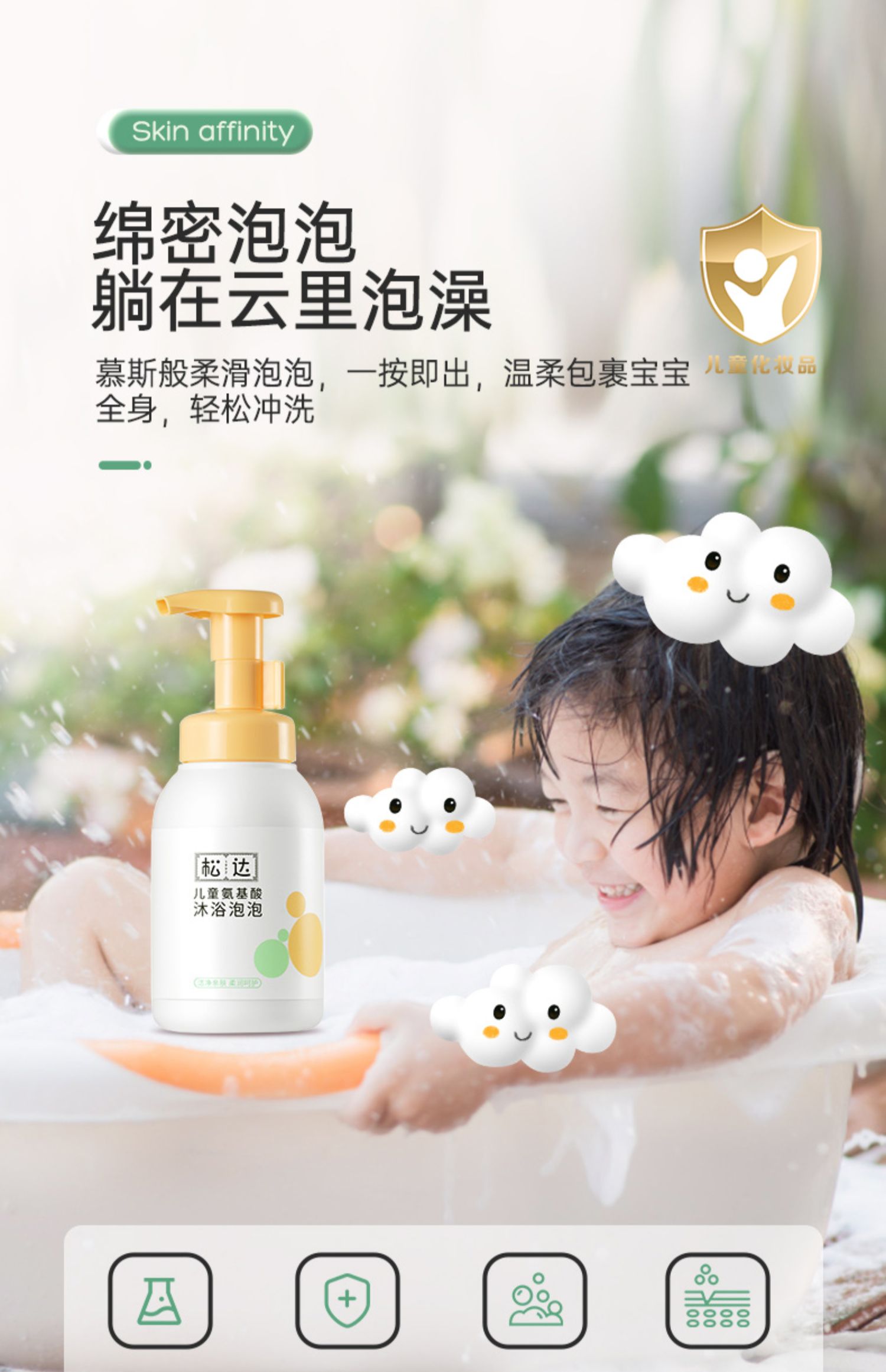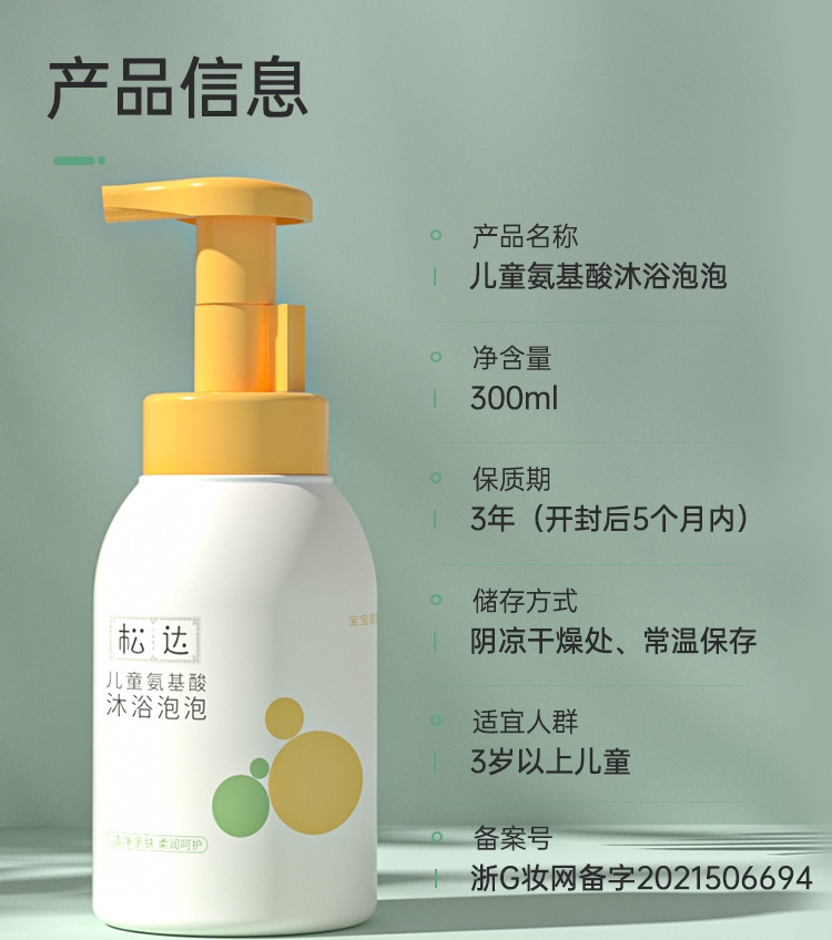 松达儿童氨基酸沐浴泡泡宝宝专用女童男孩沐浴露乳慕斯男童沐浴露