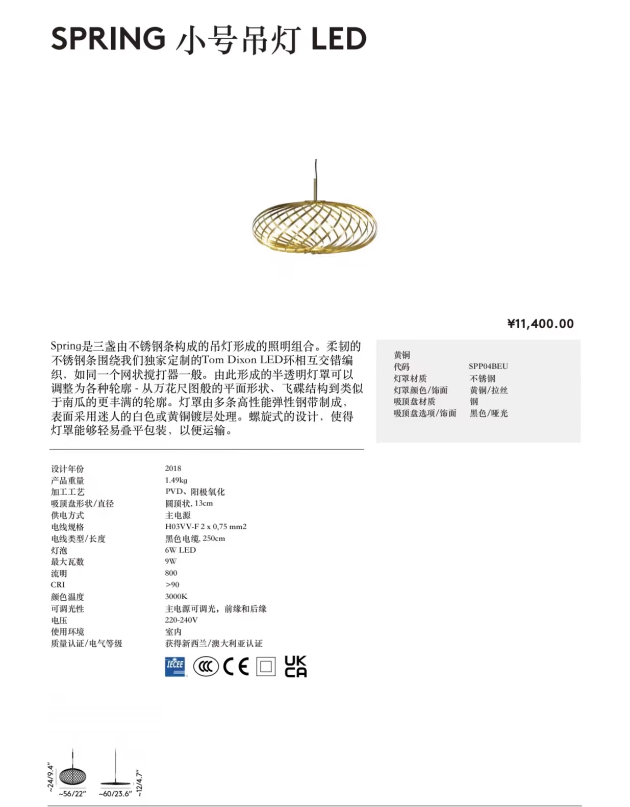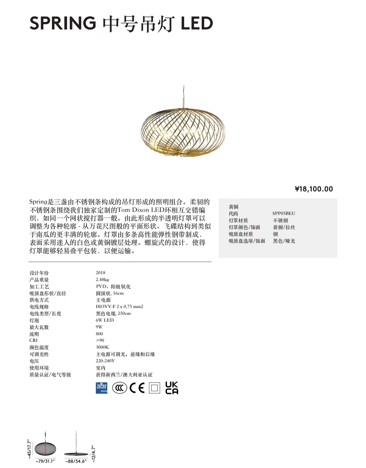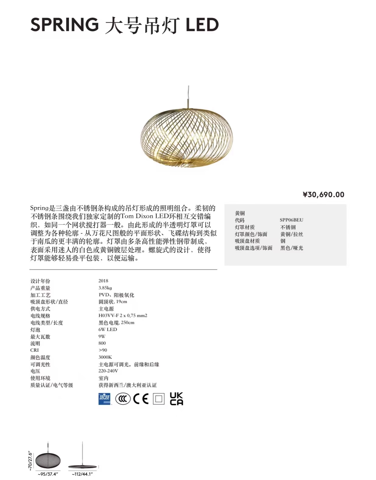 英国Tom Dixon spring 壁灯半透明吊灯卧室客厅吊灯