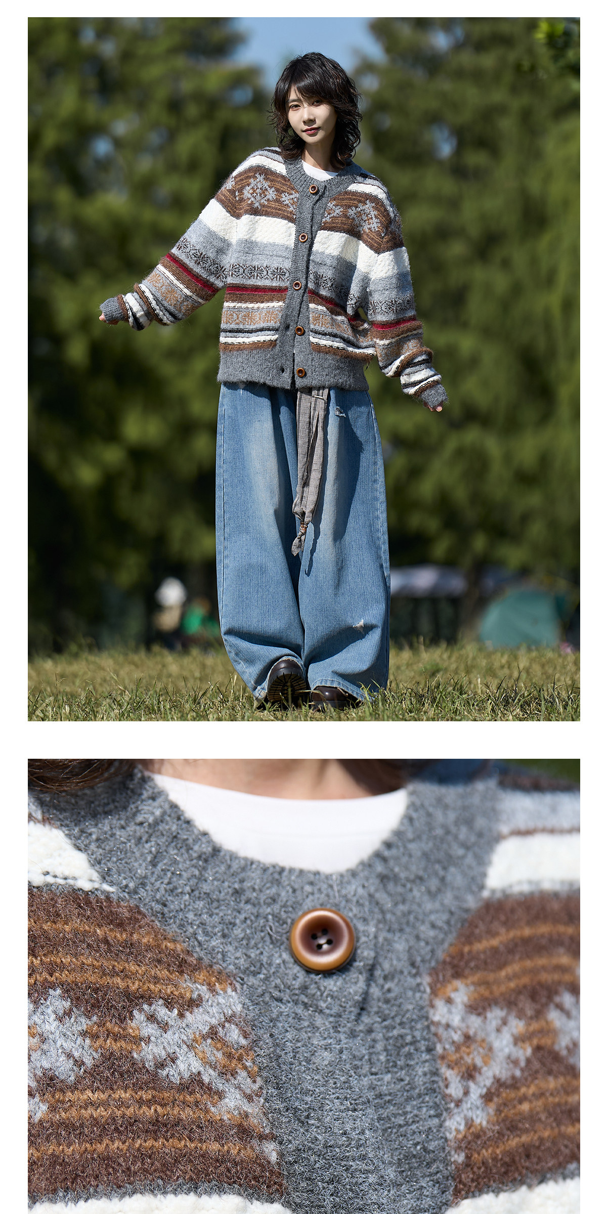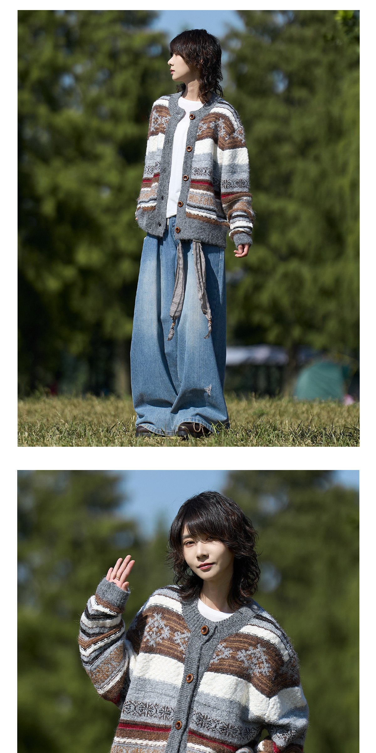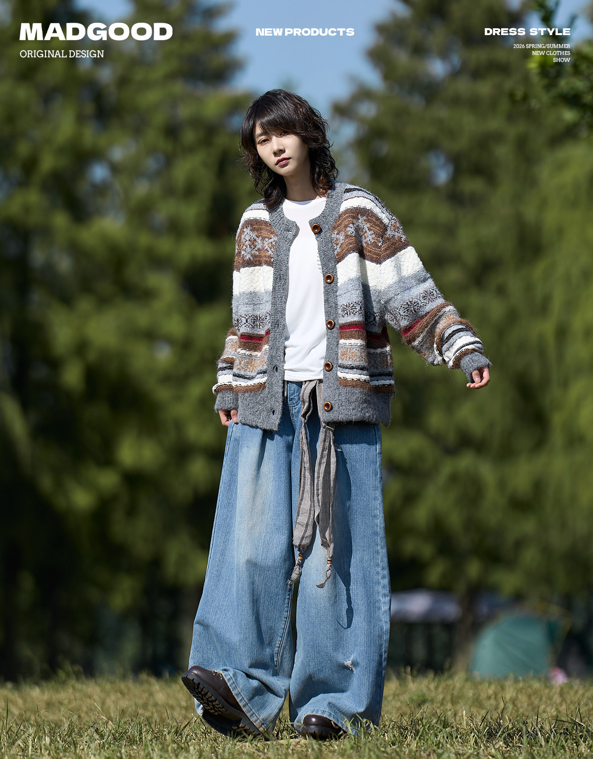 马得工地/MDGDMY212444/肌理感撞色毛衣开衫