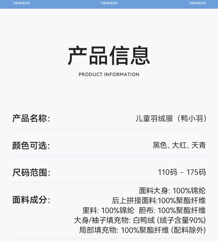 【英氏】【高密蓬松90白鸭绒】【110-175】男女童冬款轻量防水羽绒服